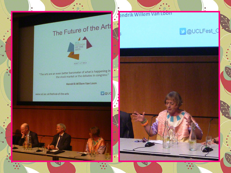 I had the most amazing day! I just attended this lively semi light hearted short one hour debate on ‘the future of the arts’, part of the UCL Festival of the Arts, chaired by the Dean of Arts and Humanities, Professor Jonathan Wolff, and panelists were Professor Lisa Jardine (UCL Historian and Broadcaster), Professor Malcolm Grant (UCL President and Provost) The Rt Hon David Willets MP (Minister for Universities and Science) and in my non bias opinion, the ‘guest star’ was Grayson Perry (artist), my absolute hero, who did attend dressed as Claire!