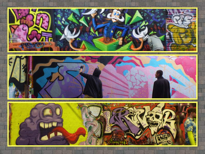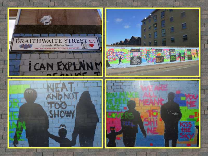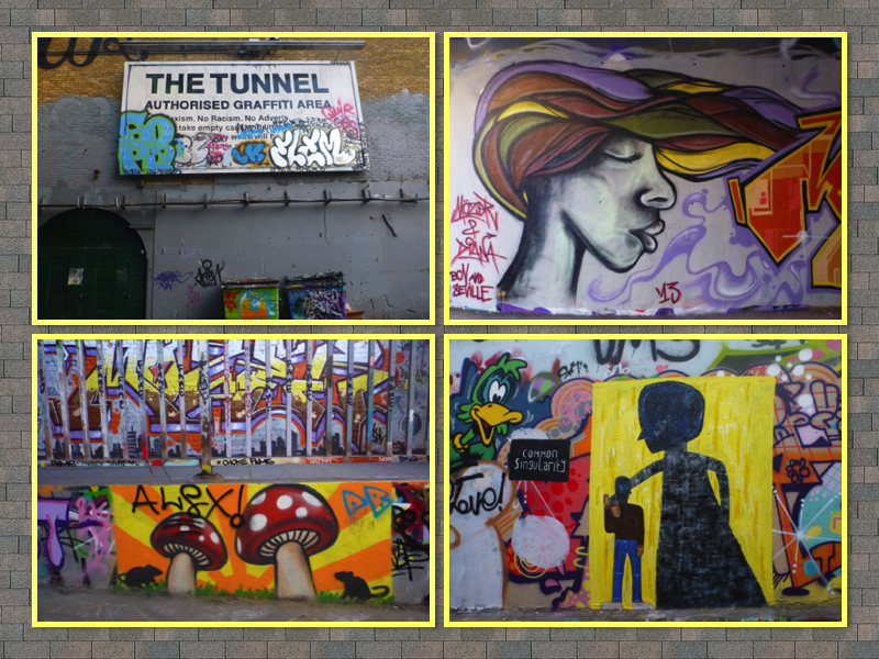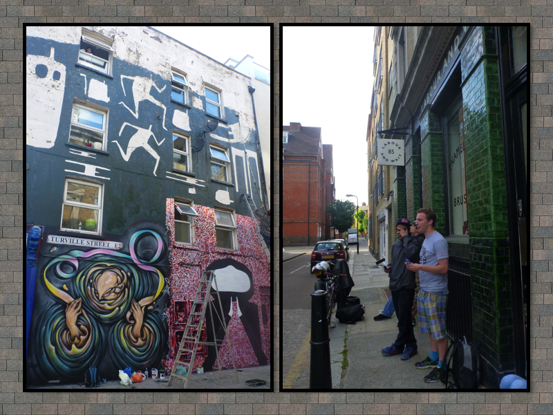 Yesterday there were several street artists at work. Turville st just off Brick Lane was getting a new wall. That wall changes really fast. Not as fast as Waterloo Tunnell where I visited for the first time. There were about 4 artists creating their art when I went. Quite amazing how they spray paint their art on the wall without a sketch book in sight, and they do it with such fluidity and confidence.