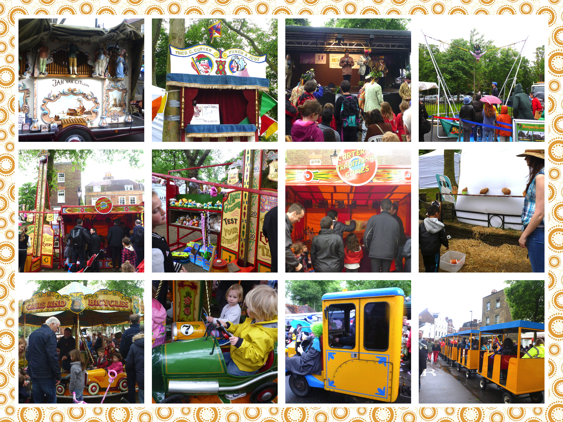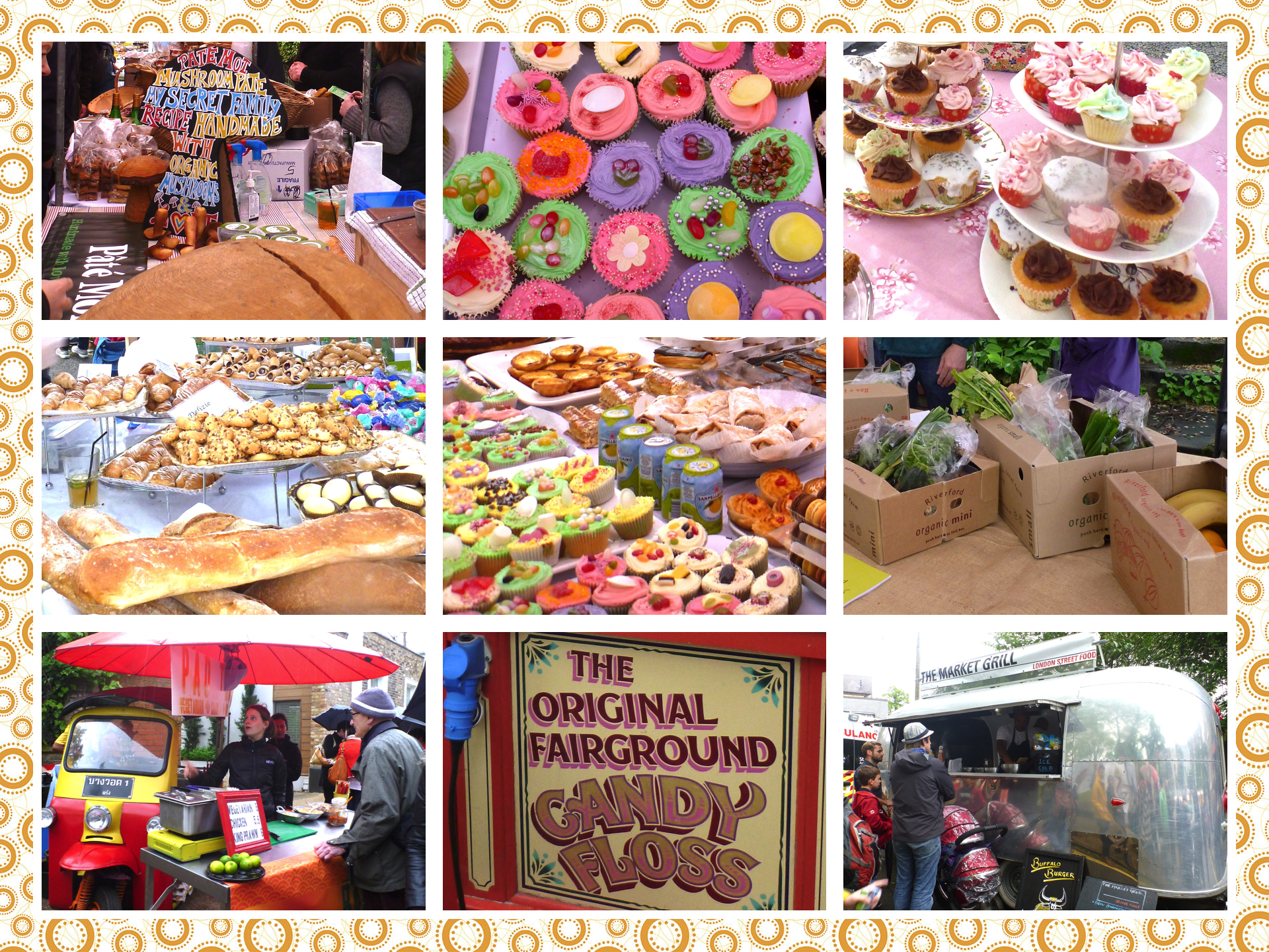 There was entertainment for adults and kids. There was a free train ride, face painting, punch and Judy show, a bungy jump, traditional games like test your strength, throwing coconuts, there were dancers, singers and musicians. For food, there was a wide selection of breads, cakes, pastries, cupcakes, Spanish food, Thai food, Southern street food, burgers, candy floss, cheese, waffles, crepes, truffles and organic vegetables. There were many charity stalls and handmade crafts such as vintage textile bags, woodwork, kids clothes and toys, silk scarves, jewellery, cards, prints, soaps, foral cups,