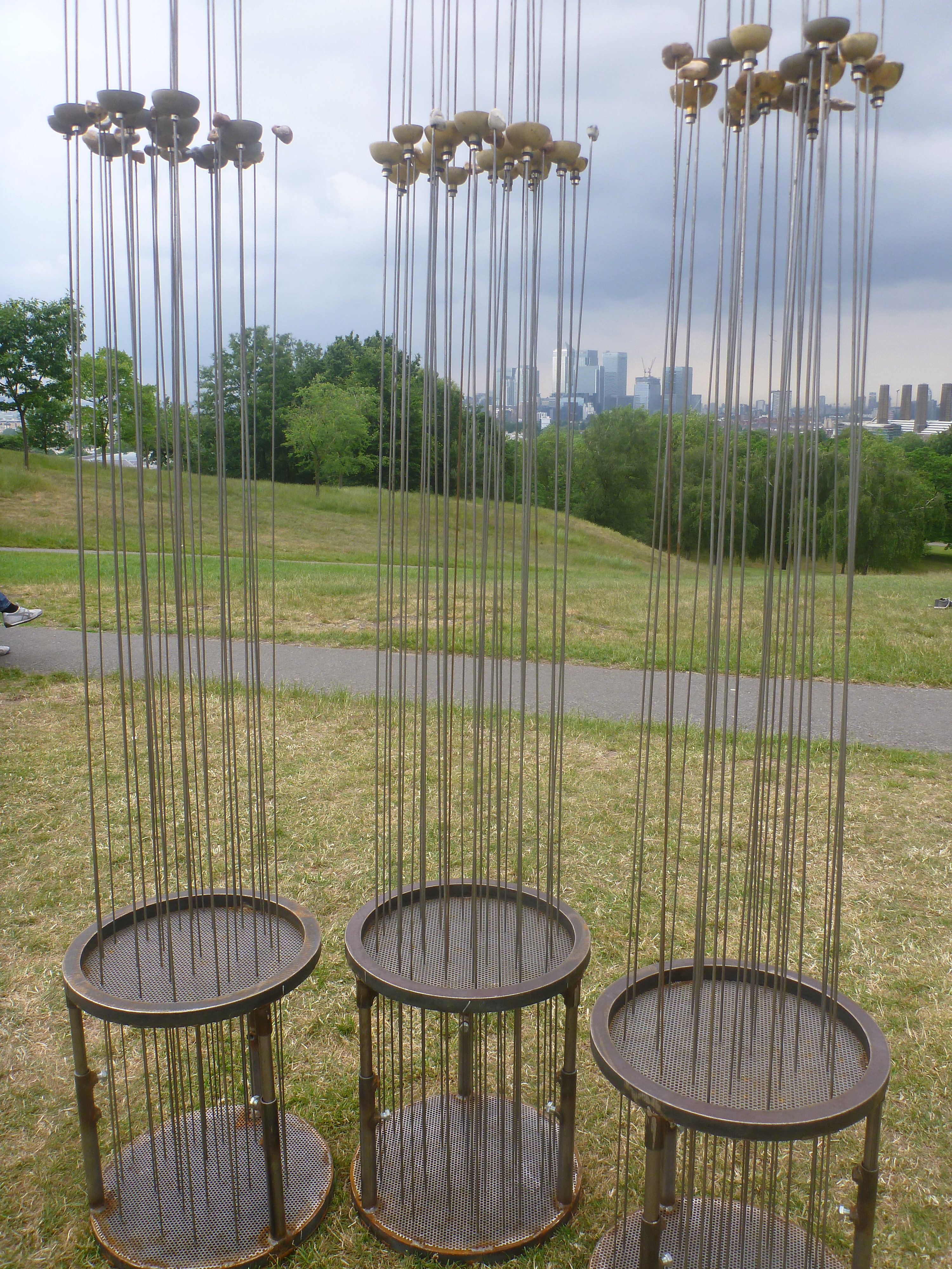 Above is the view of the Old Royal Naval College and below is the installation called Audible Forces. The different instruments uses wind to make sound and music.