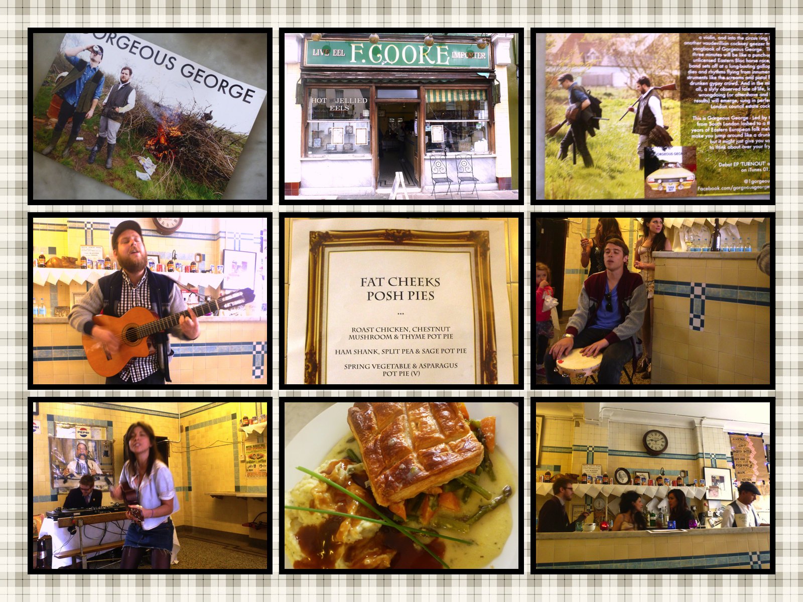 This was a different experience for me. A pop up restaurant in East London on Broadway Market. Basically Fat Cheeks took over F.Cooke’s traditional pie restaurant for the day, sprinkled it with some hipster magic and transformed the place into a cool hangout, with an updated version of the menu, interesting cocktails and live original music by Gorgeous George.