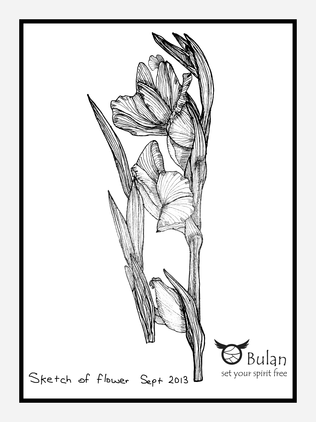 Sketch of the humble Gladioli, with its towering stems symbolizes strength and moral integrity.