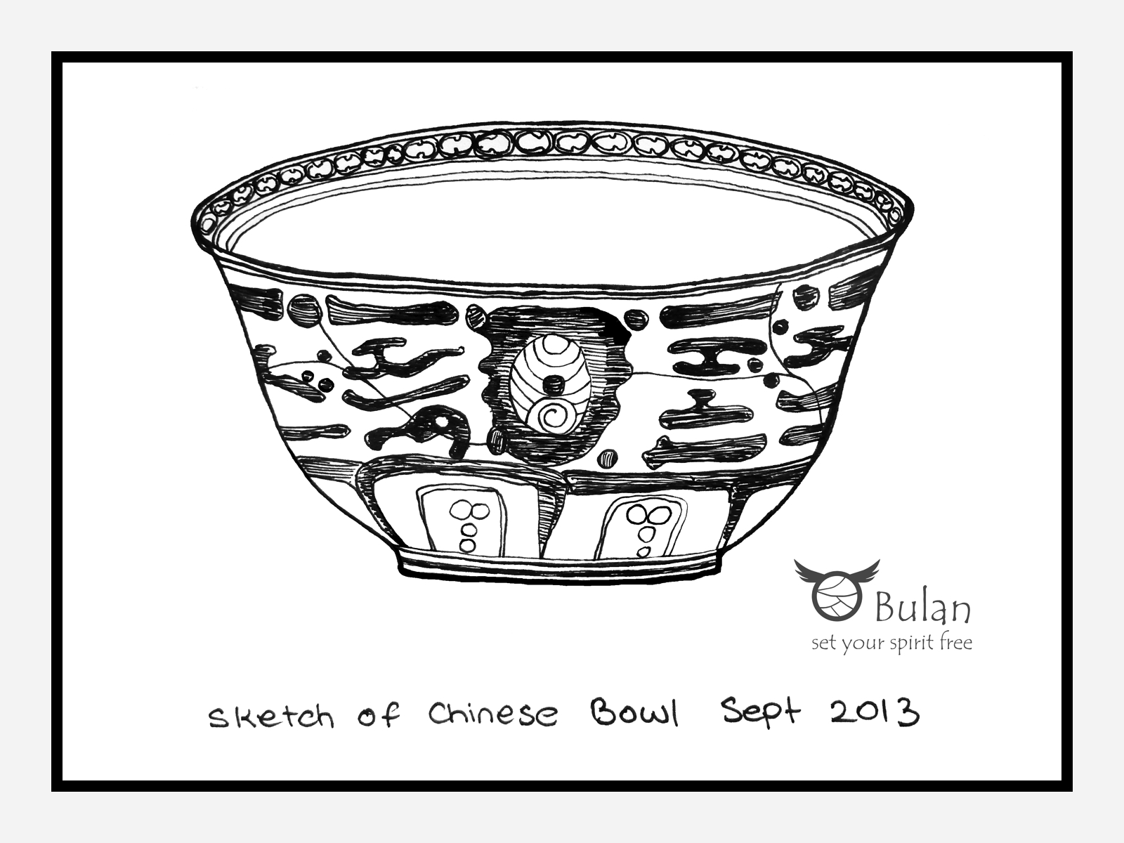 Antiques and Collectibles, blue and white Chinese bowl, bulan lifestyle, Sketch of bowl, Sketch of chinese antique bowl, vintage