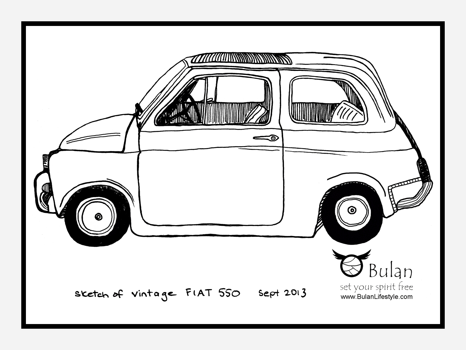 art, bulan, bulan lifestyle, fiat 550, fiat art, illustration, illustration fiat 550, sketch