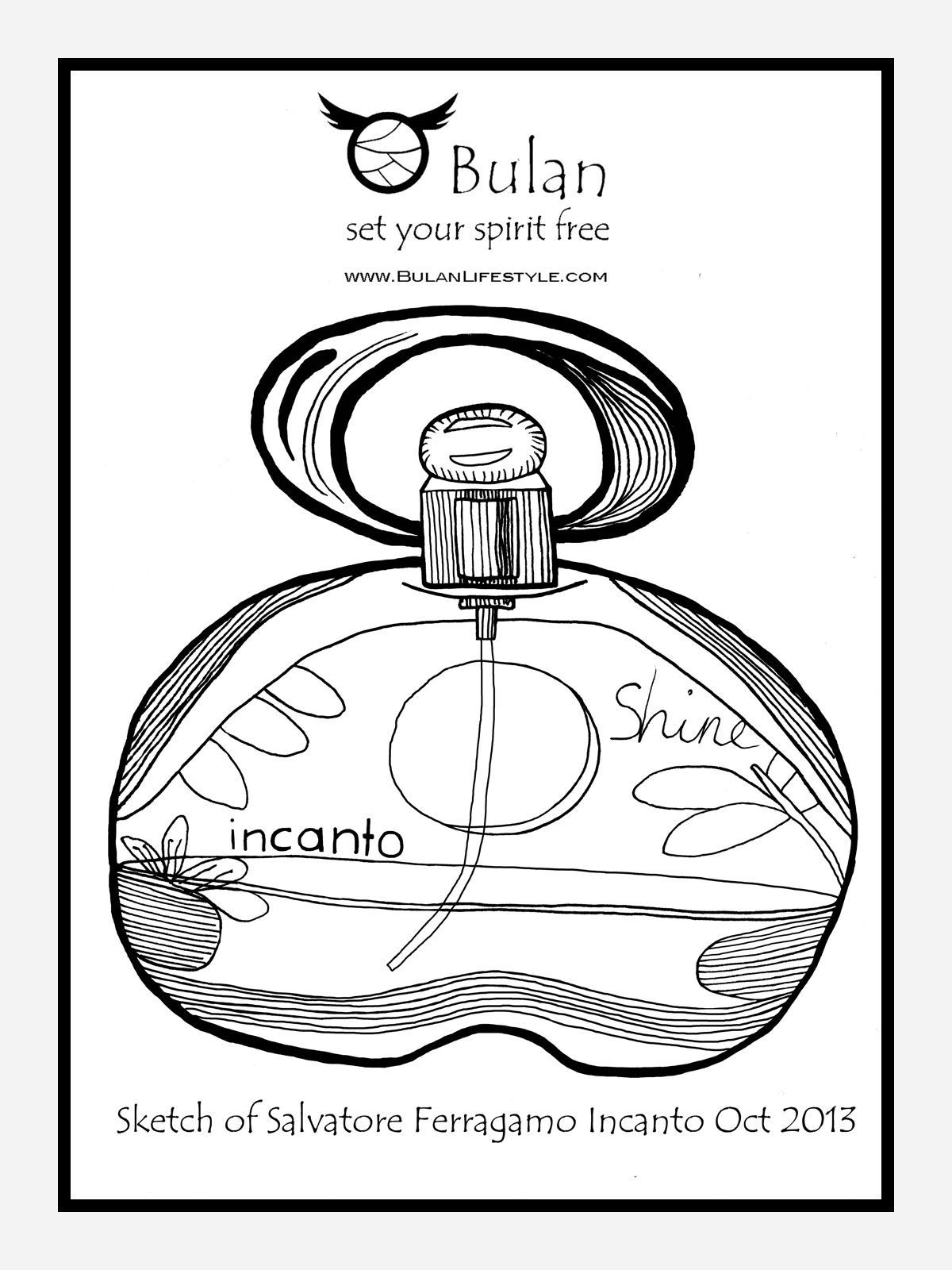 art, bulan, bulanlifestlye, drawing, frangrance bottle, illustration, INCANTO, penang artist, Perfume, perfume bottles, Salvatore Ferragamo, sketch