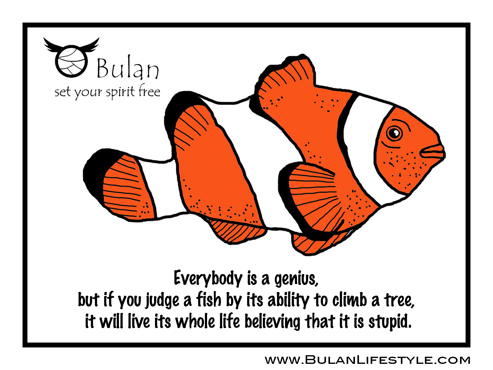 I will leave you with this positive quote. Set your spirit free: Everybody is a genius, but if you judge a fish by its ability to climb a tree, it will live its whole life believing that it is stupid