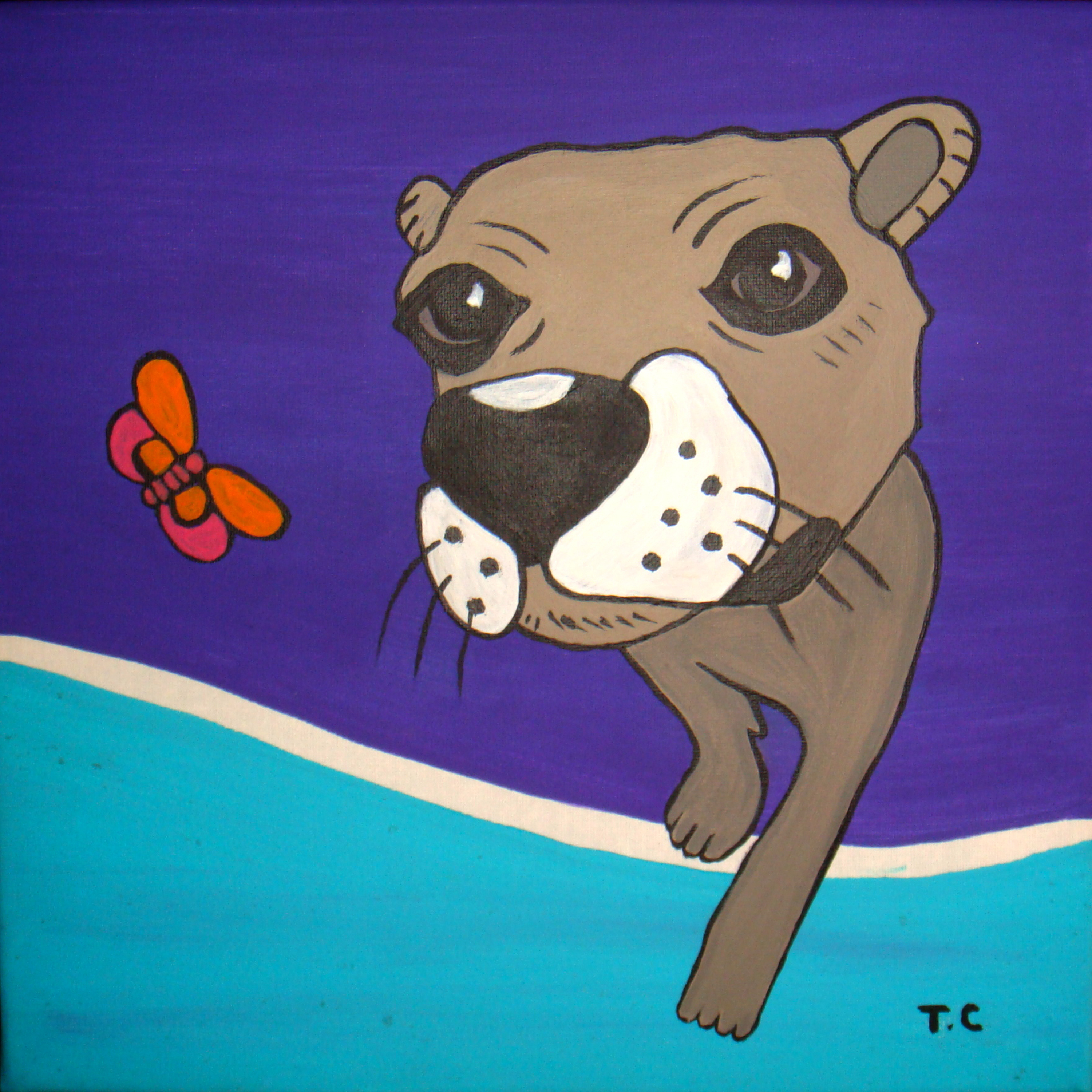 Bao Bao the small dog with butterfly on purple and turquoise background. These are quite small paintings. I want to practice painting on this size before I start larger ones when I feel a bit more comfortable. I am really enjoying working with acrylics. It’s less delicate than watercolour and less messy than oils.
