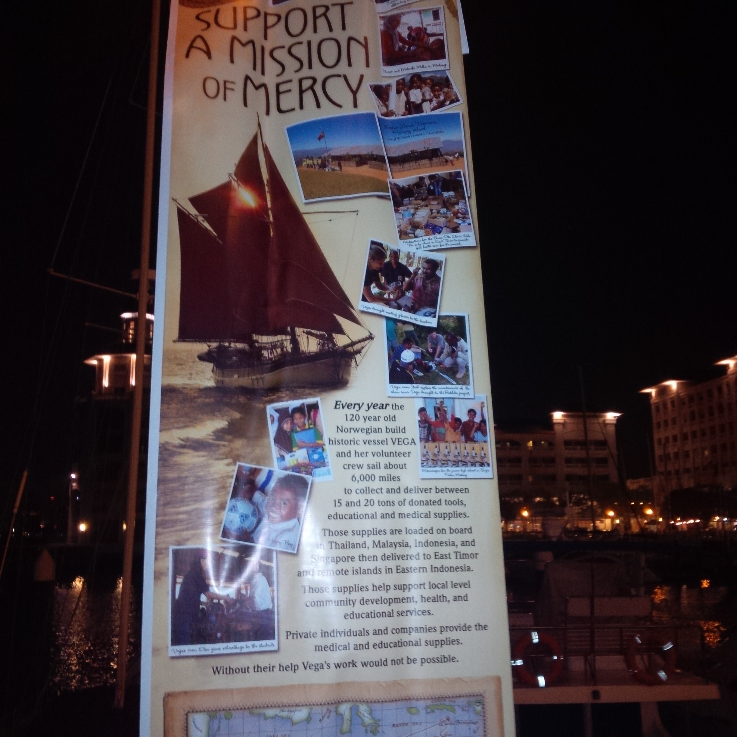 Every year since, the VEGA and her volunteer crew sail about 7,000 miles to collect and deliver between 15 and 20 tons of donated tools, educational and medical supplies. Those supplies are loaded on board in Thailand, Malaysia, Indonesia, and Singapore then delivered to East Timor and remote islands in Eastern Indonesia. Those supplies help support local level community development, health, and educational services. Supplies are also collected in Australia by VEGA supporters and shipped to Dili on board the yachts in the yearly Darwin to Dili Regatta.In addition, advanced training for traditional midwives and teaching aids for rural teachers are provided by a fully qualified Indonesian doctor  who travels with on board, providing medical services on the remote islands and holding workshops or training seminars for traditional midwives.