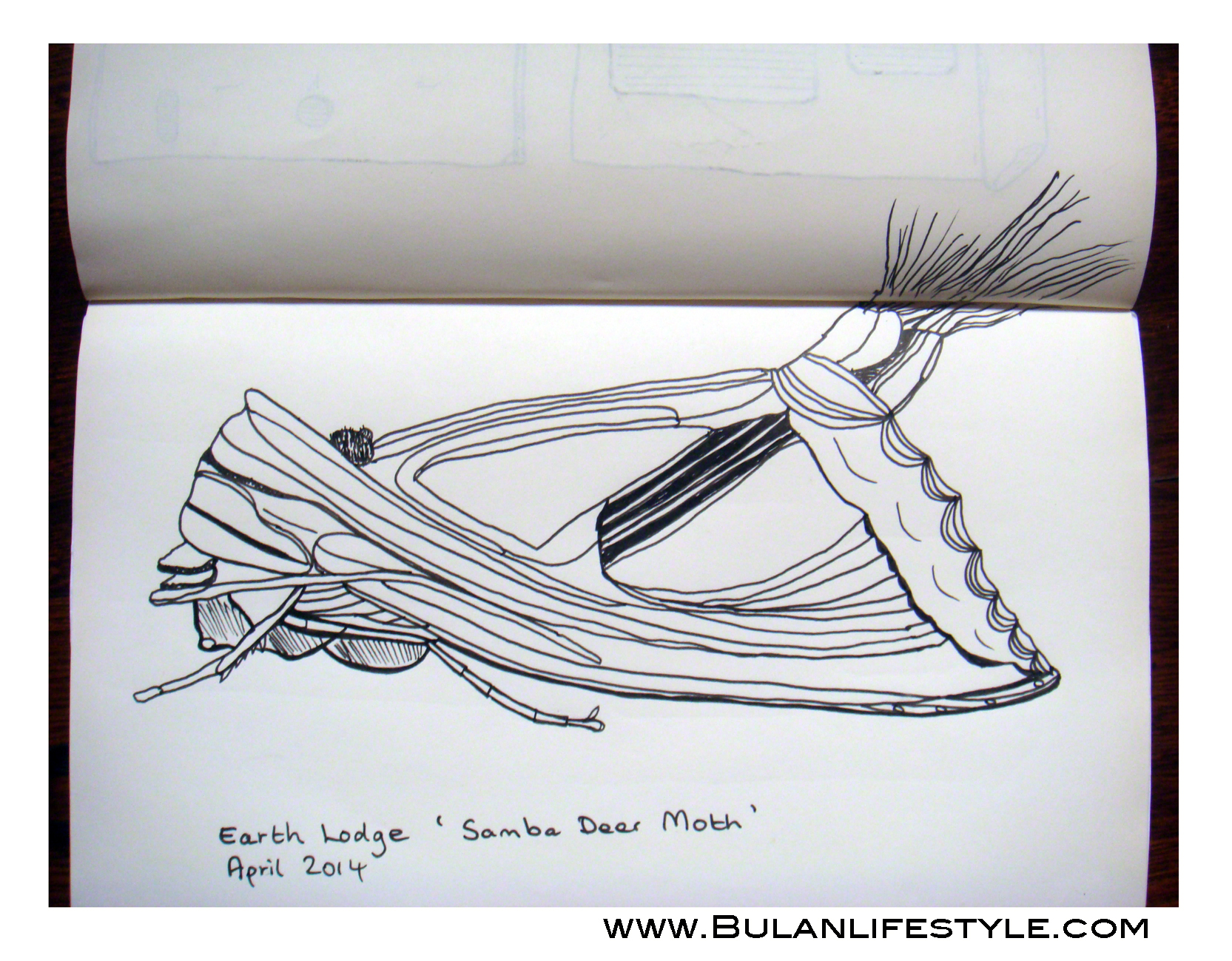 cool moth, deer moth, earth lodge ulu muda, insect sketch, insects, malaysian moth, strange looking moth, ulu muda