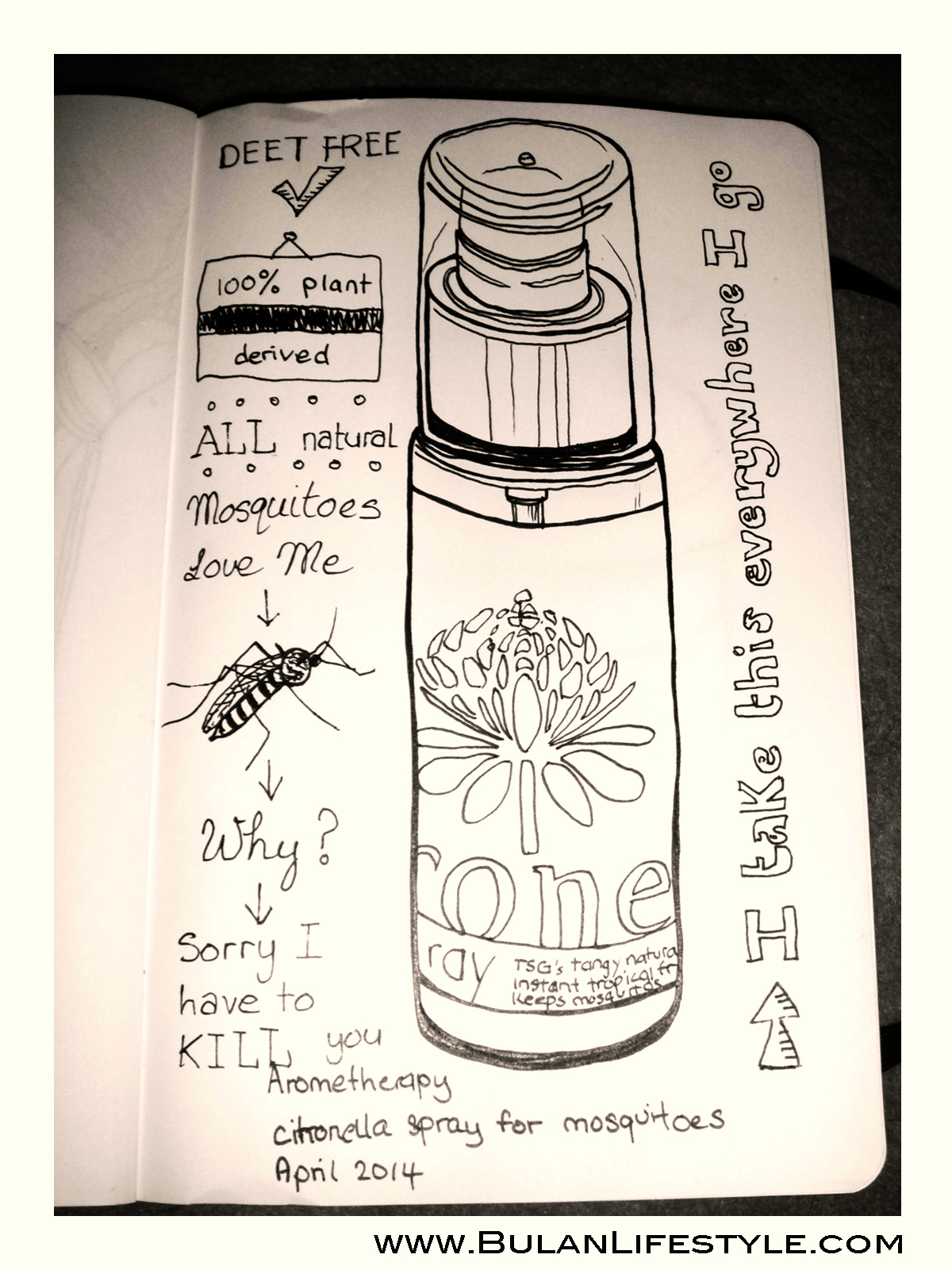My sketch for today is what I can’t leave my home without!! It’s a sunny day. I’m off to the beach, with my mossy repellent of course 🙂