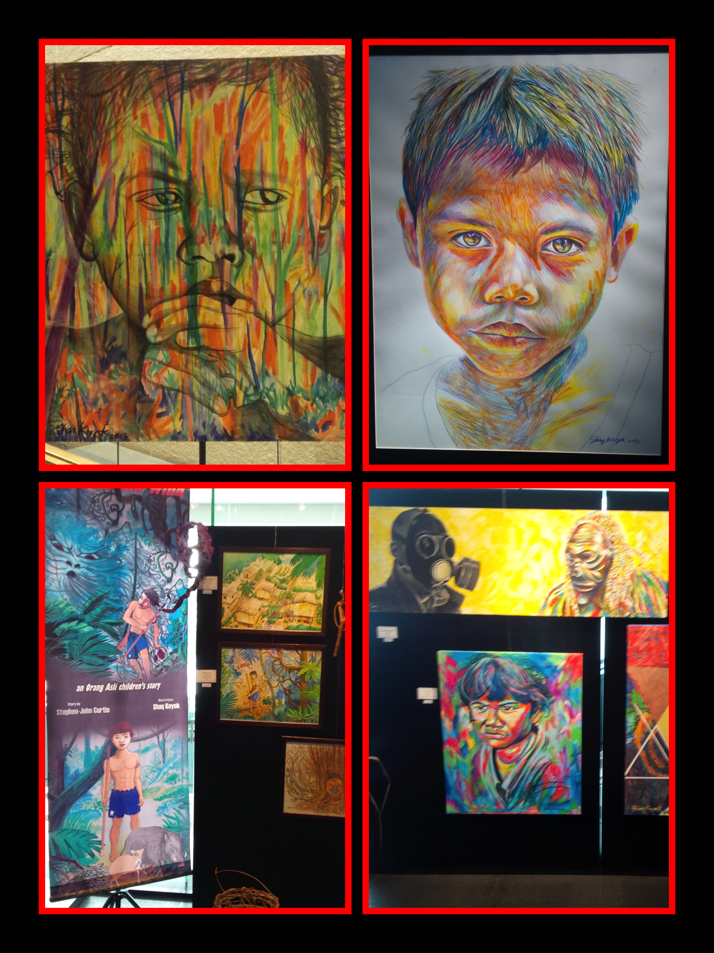 Shaq Koyok, was born in 1985 in a ‘orang asli’ or ‘aboriginal’ village called Kampung Pulau Kempas, Banting, Selangor, Malaysia He has painted ever since he was a child and he uses his art to express his experiences and to raise awareness of the plight of his people and the rainforest which he grew up in.