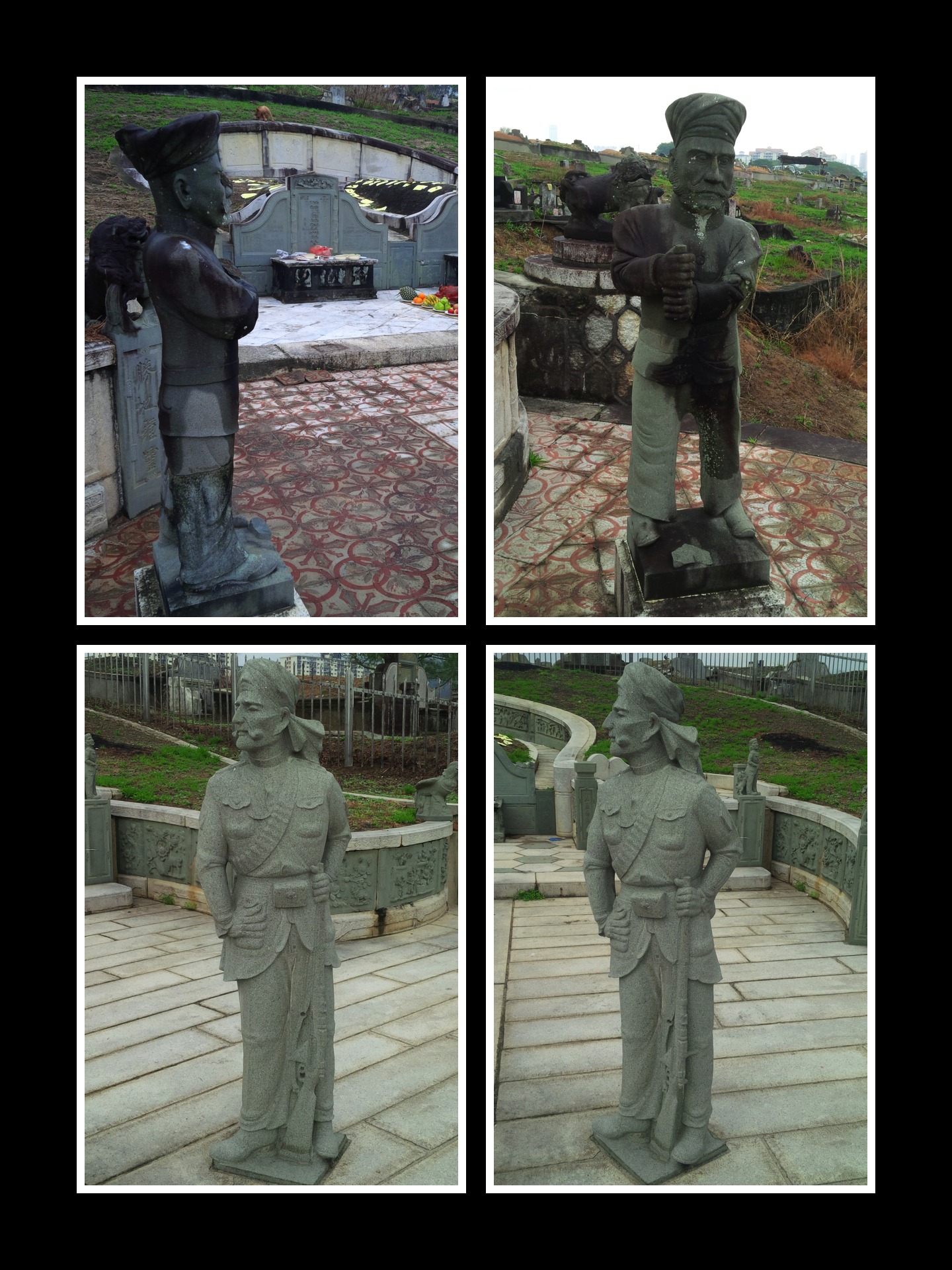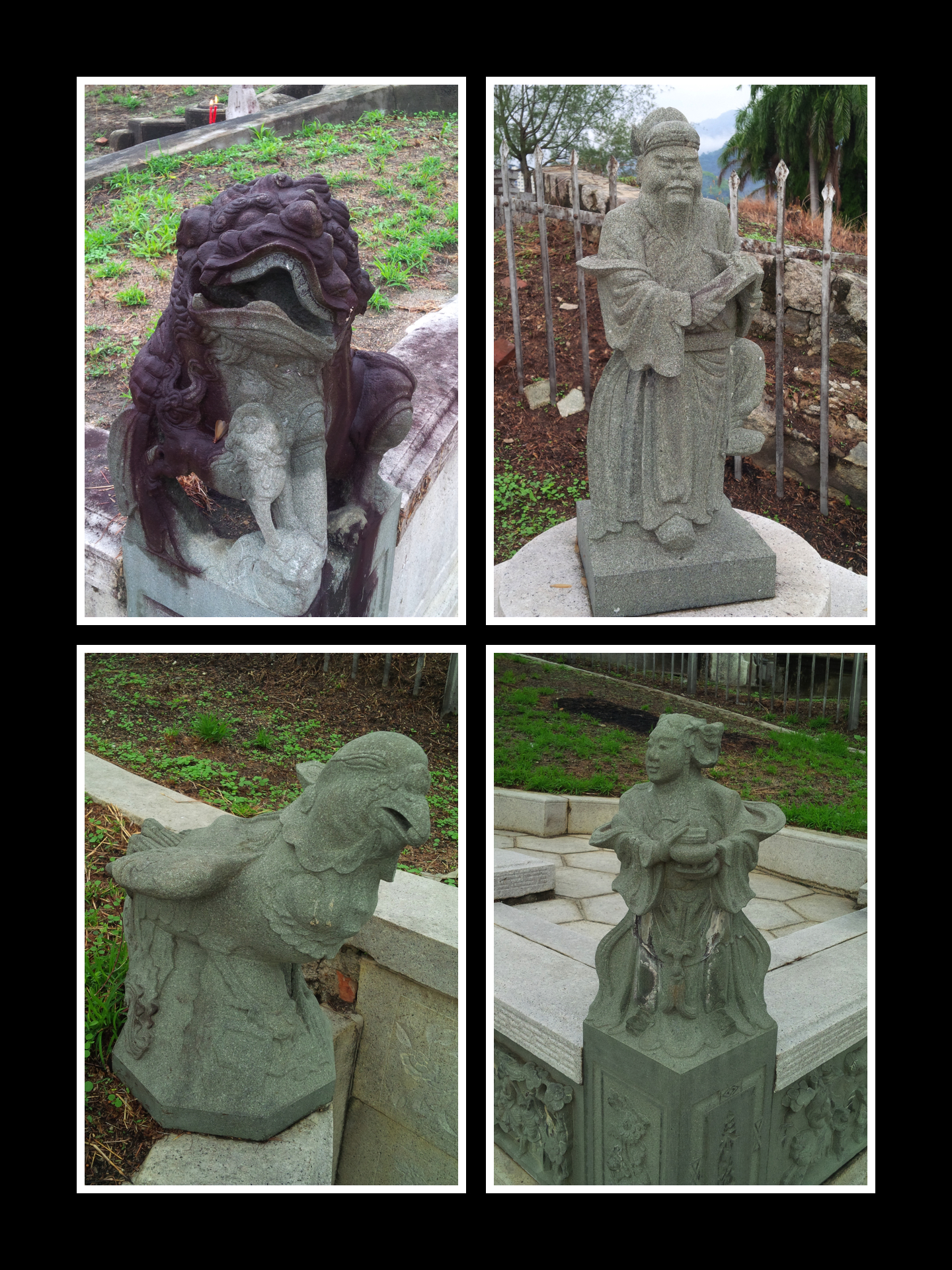 The photos are the graves of my Great Grand Parents and my Great Great Grandparents. You can see carvings of Sikh guards and animal guardians around the tomb because the Chinese believe that when they cross over to the after life, they will continue to need these earthly luxuries.