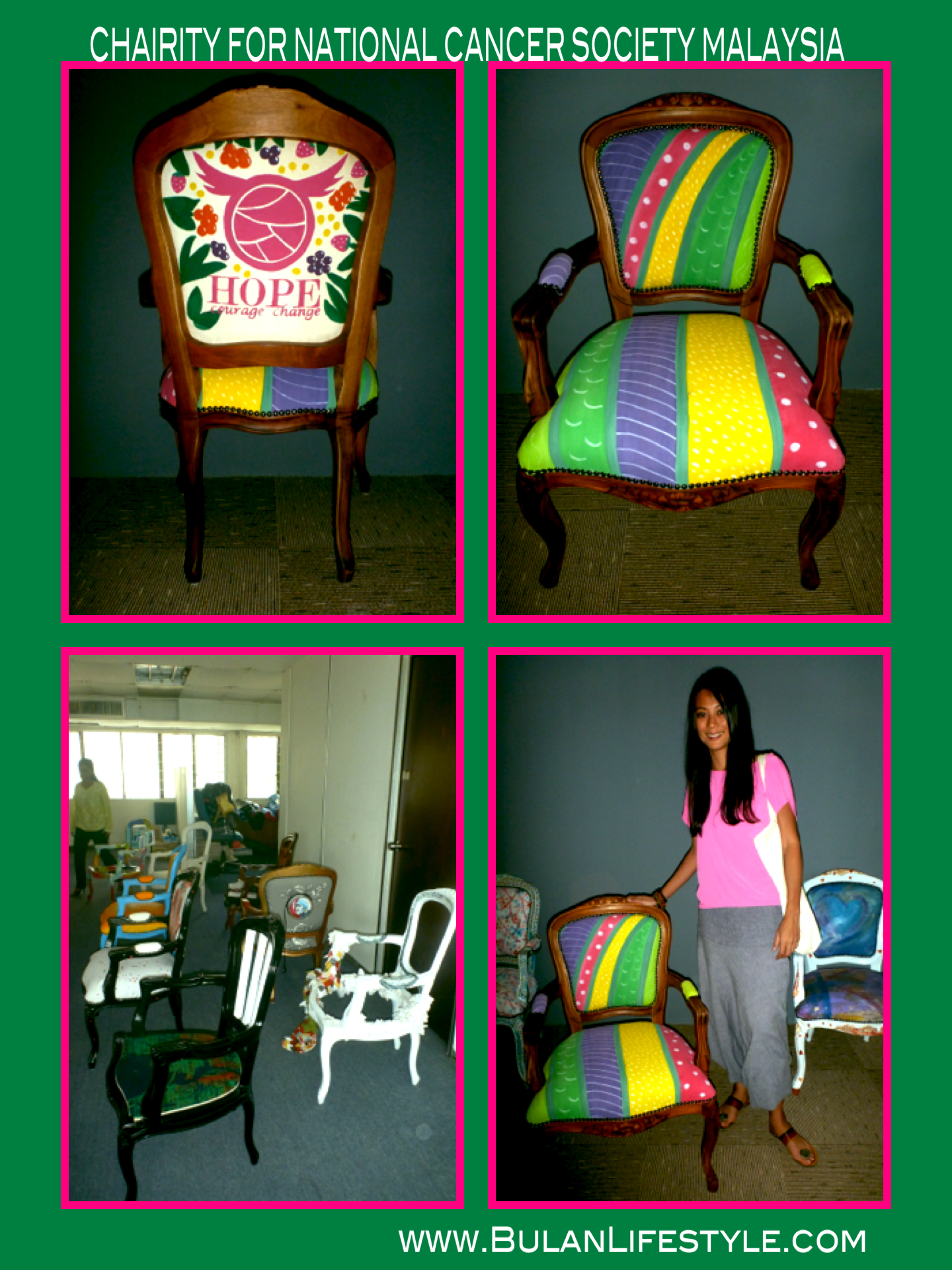 Today I finally got to see my chair fully upholstered as a finished product. I went to the National Cancer society office to check out my Chair for Chairity, a cancer awareness campaign organised by National Cancer Society Malaysia. My chair and the other 14 fabulous chairs by Malaysia’s top artists will be auctioned off on Thursday 15th May at the Edge Gallerie at Publika to raise money for the cancer charity.