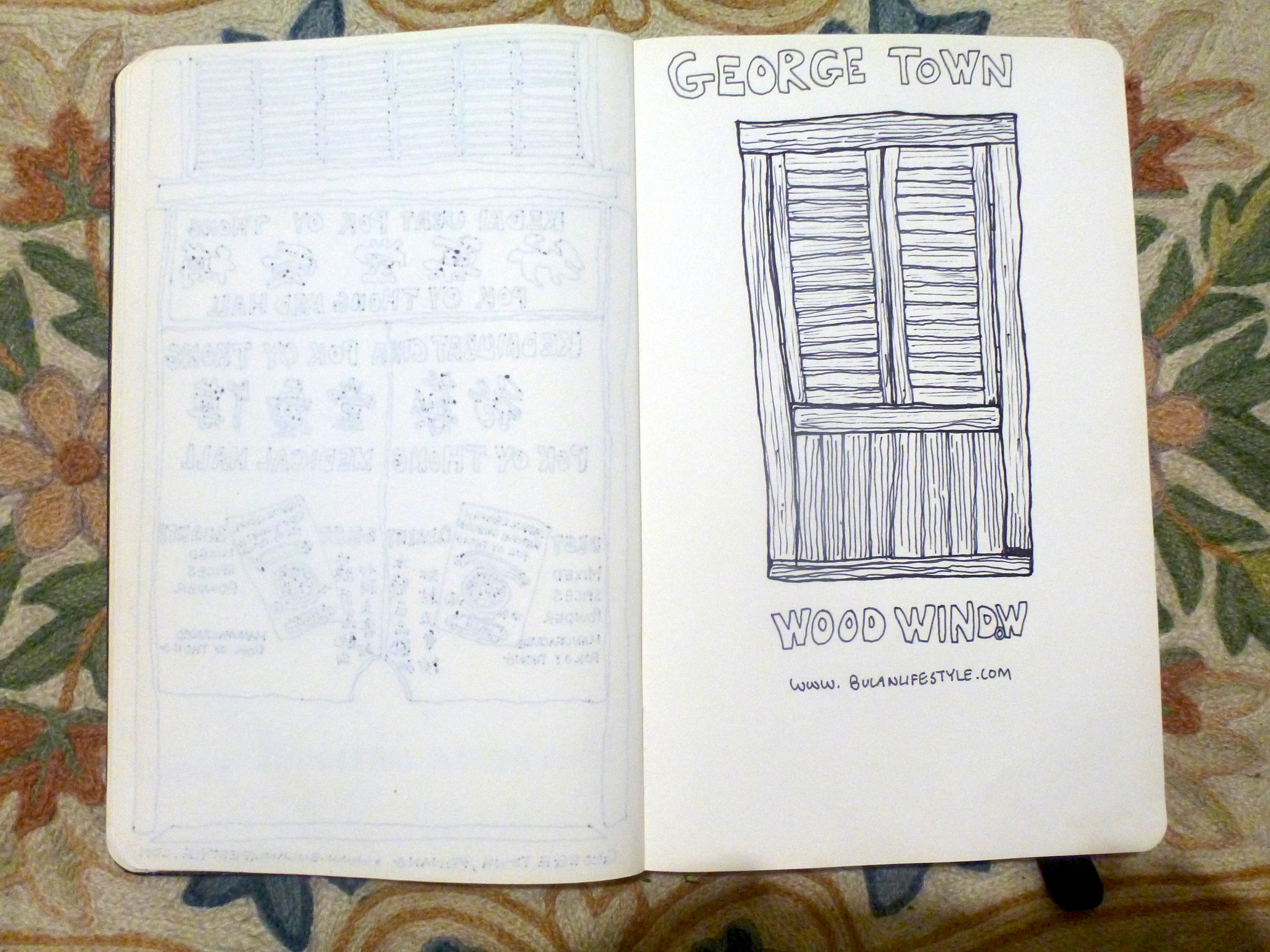 bulanlifestyle, george town penang, penang art, penang shophouse, penang sketches, sketch a day, window drawing, wooden shutters