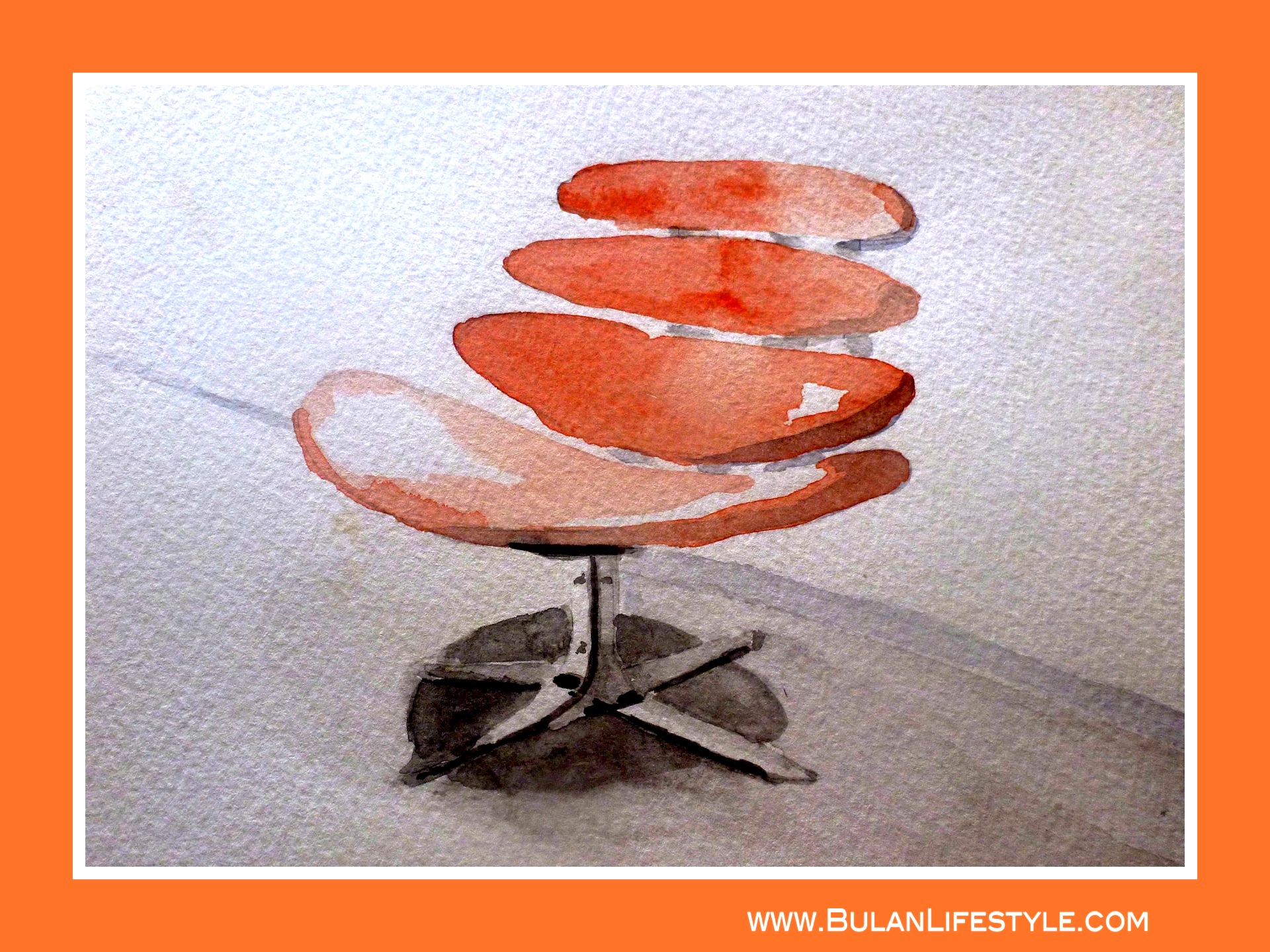 art, art and design chairs, bulanlifestyle, classic chairs, designer chairs, orange chairs, poul volther, Poul Volther Vertebrae Chair, retro chairs, Watercolour of Poul Volther Vertebrae Chair