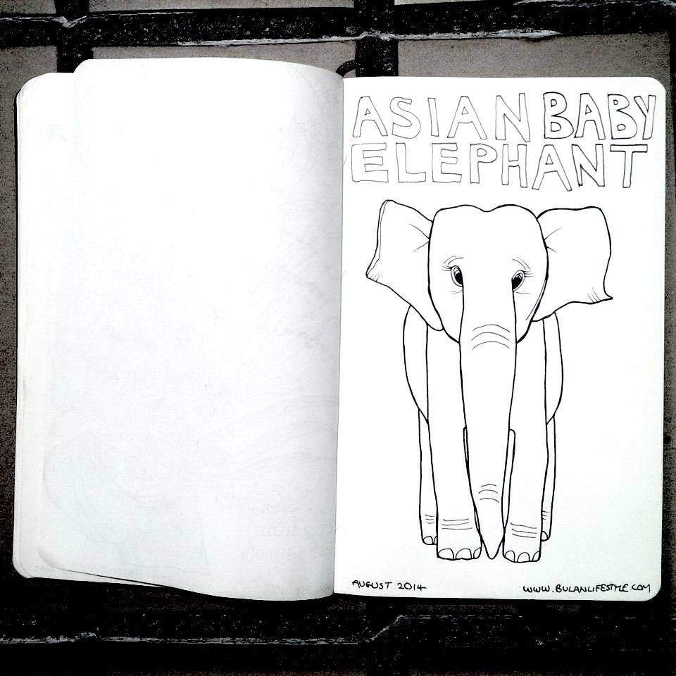 art, asian elephant, bulanlifestyle, elephant drawing, malaysian wildlife, moleskine sketch, sketch