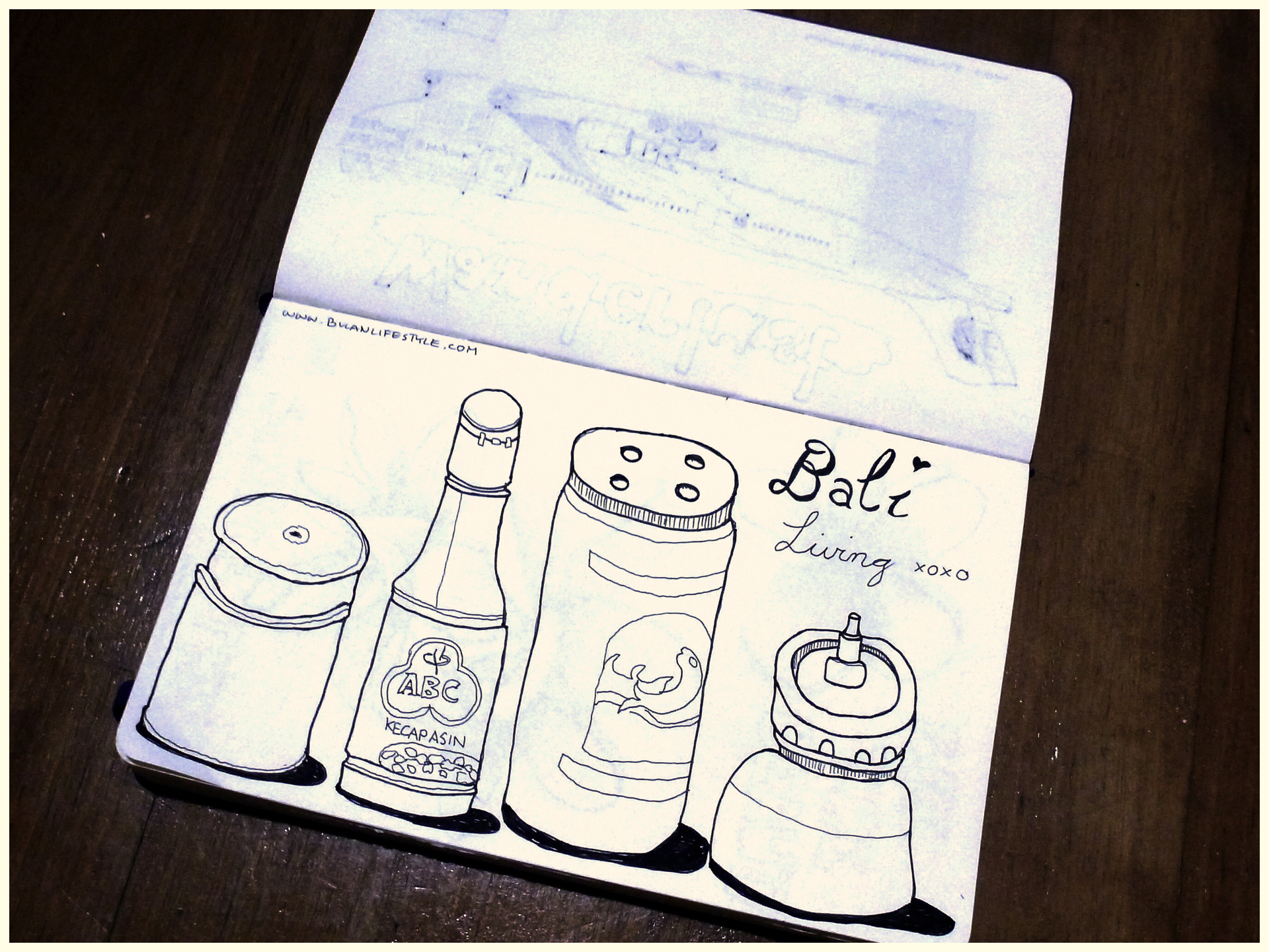 bali, bali art, canggu, indonesian condiments, moleskine art journal, moleskine sketchbook, sketch challenge, travel and draw
