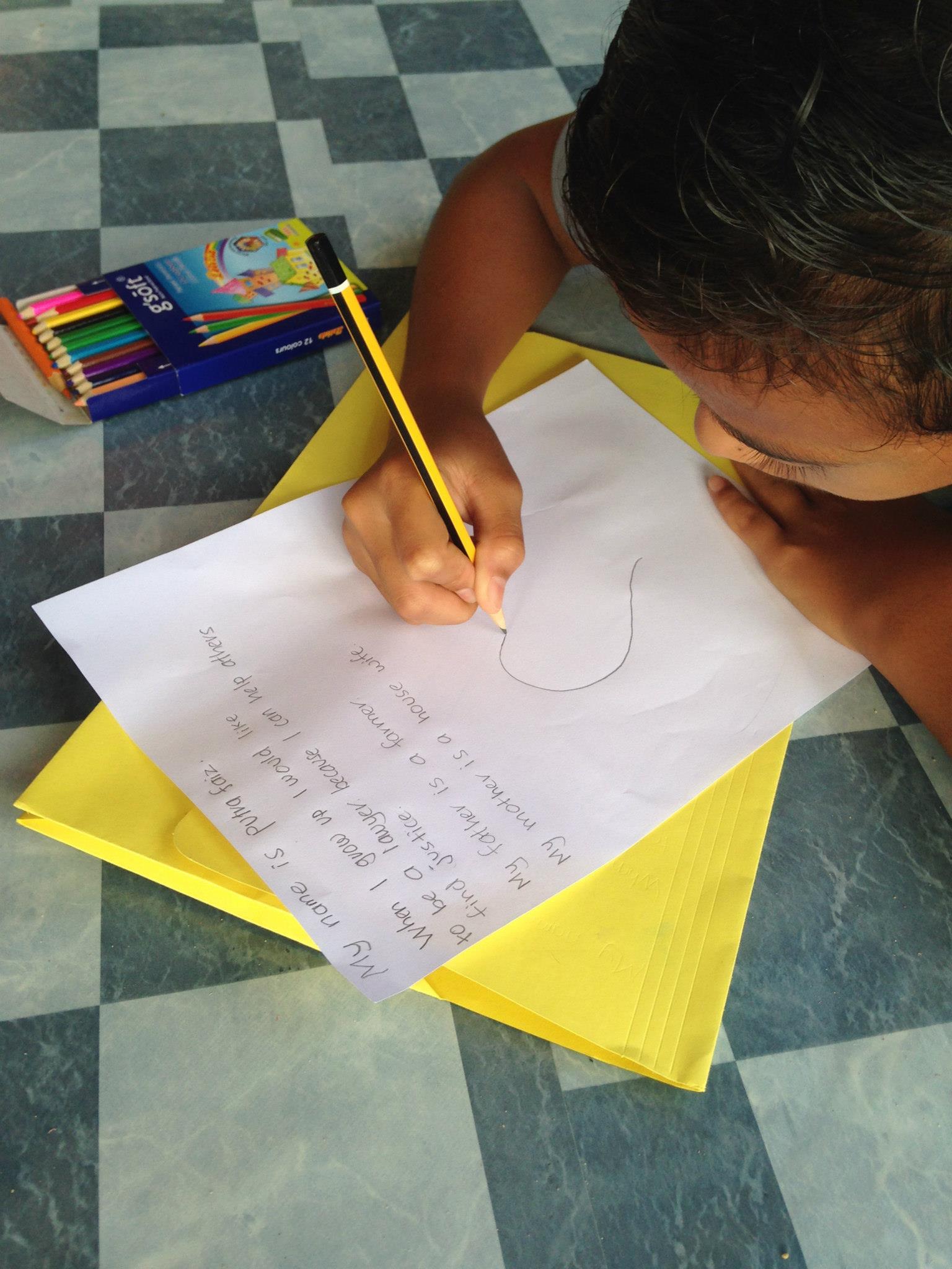 Most of the kids didn’t have confidence speaking in English. Another way we got them to speak was to ask them to write it down first on paper and then after we got them to read it out to us.