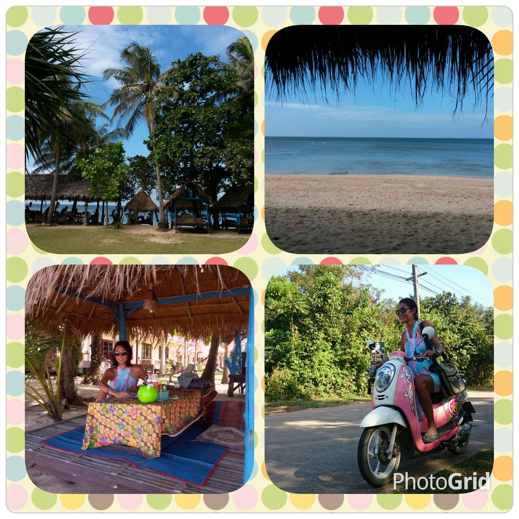 The place im staying is right on the beach and i was greeted by this stunning view as I went to breakfast. I sat in one of the little wooden shacks for breakfast with the view of the sea in front of me. Second thing I did was to walk on the beach and then I went to look for a scooter. I found myself a pretty pink one