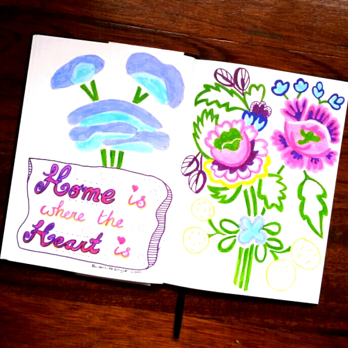 Todays sketch of the day in my art journal is inspired by a nonya antique rug design with the quote home is where the heart is ♡
