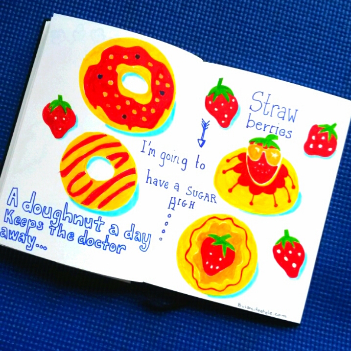 Today’s sketch of the day is a request from a friend of mine for strawberry jam doughnuts so here you go as promised! Haha it made me laugh drawing this I don’t know why. Maybe i was im a quirky mood. Im ok with doughnuts and I surely don’t crave them.