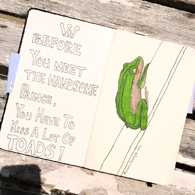 Sketch of the day in my brand new moleskine art journal: before you meet the handsome Prince, you have to kiss a lot of toads. Just saying