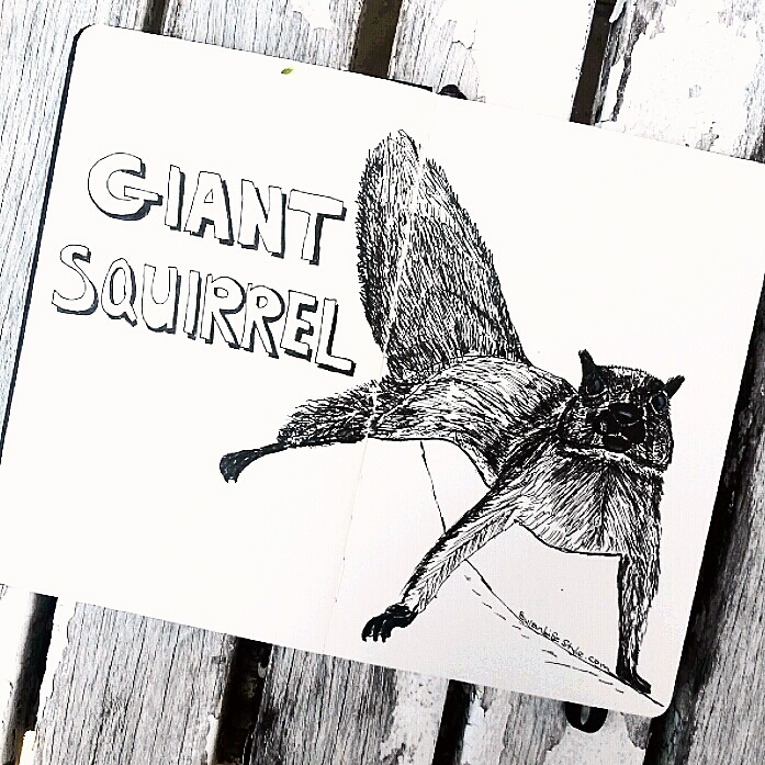 Today’s Sketch of the day in my moleskine art journal is a giant squirrell. Im working on a series of merchandise for a brand new eco centre up on Penang Hill and I’m exploring some ideas of what to print. This cute little fella could be one of them. I have quite a lot of drawings from Penang hill. When I have time I need to sort them out.  The day flies by so quickly. I need to sit down