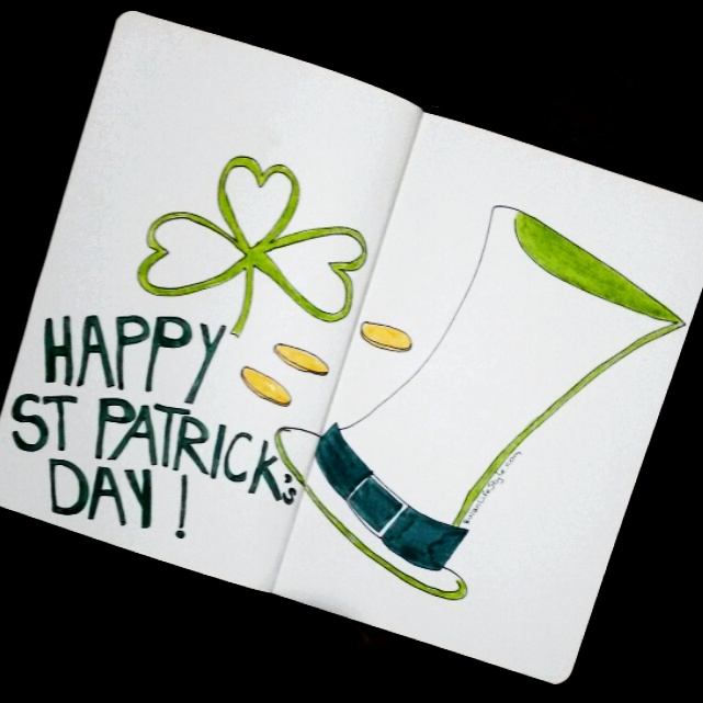 Sketch of the day in my moleskine art journal is a 4 leaf clover, some gold coins and a hat. Wishing you a Happy st Patrick s Day!