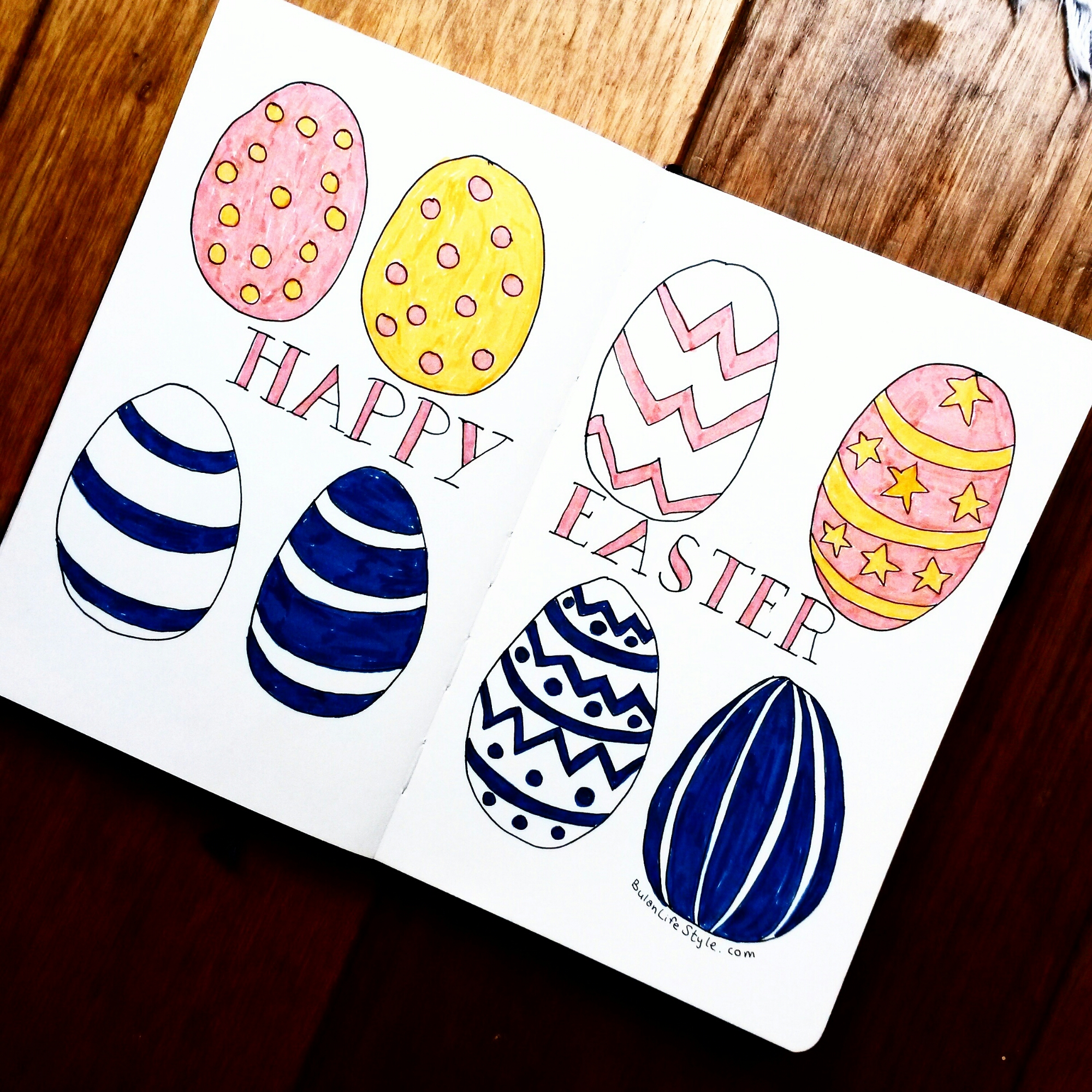 So today’s sketch of the day in my moleskine art journal has nothing to do with April fool’s. My sketch are Easter egg patterns. Some polka dots and nautical designs. I don’t have that many colours to work with. I’m travelling at the moment and I only brought a few faber castell pens with me. Keeping it simple.
