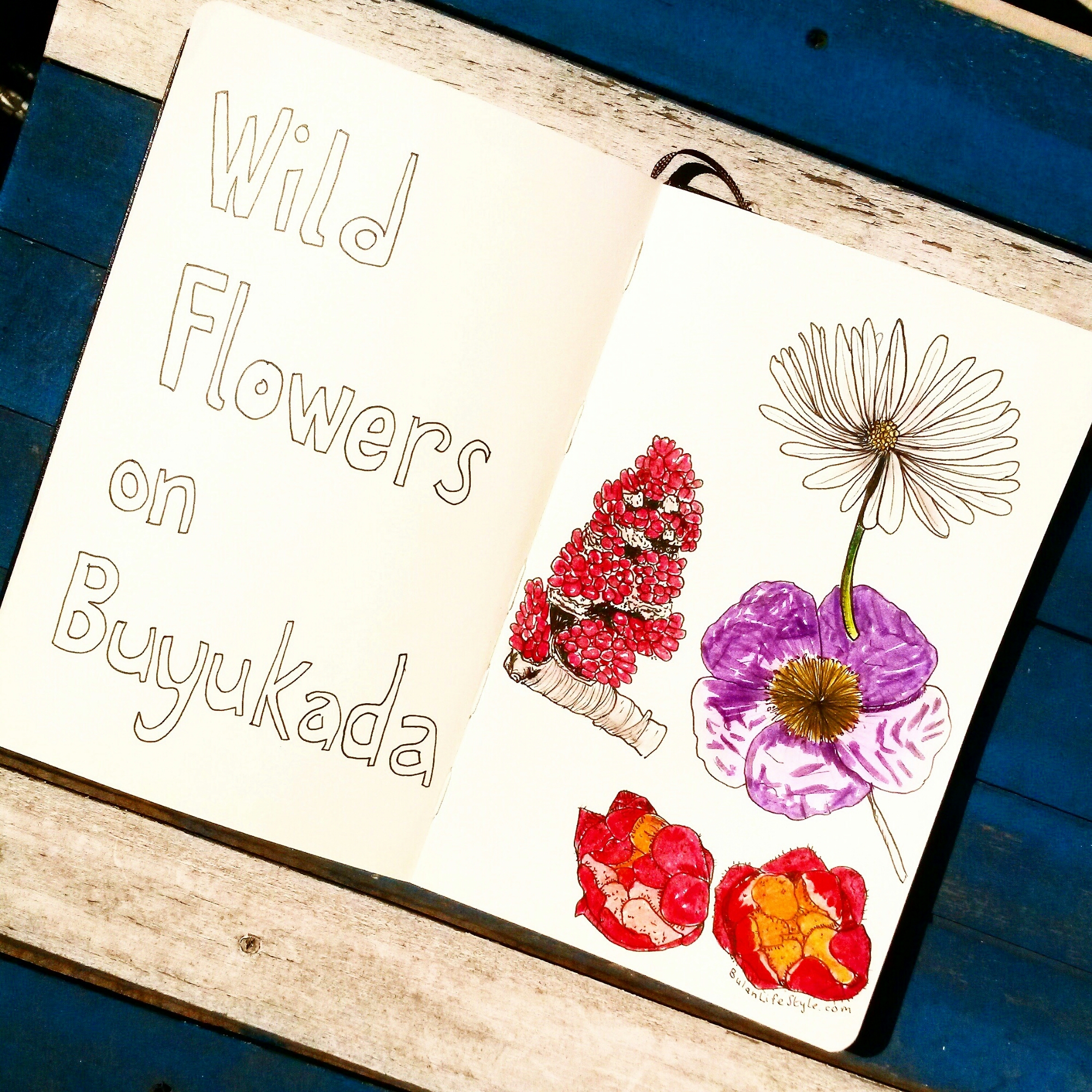 Yesterday i visited the Princess island around Istanbul. I went to Buyukada which is the largest island. The place is beautiful. Today’s sketch of the day in my moleskine art journal are botanical illustrations of some wild flowers on Buyukada island, Istanbul, Turkey