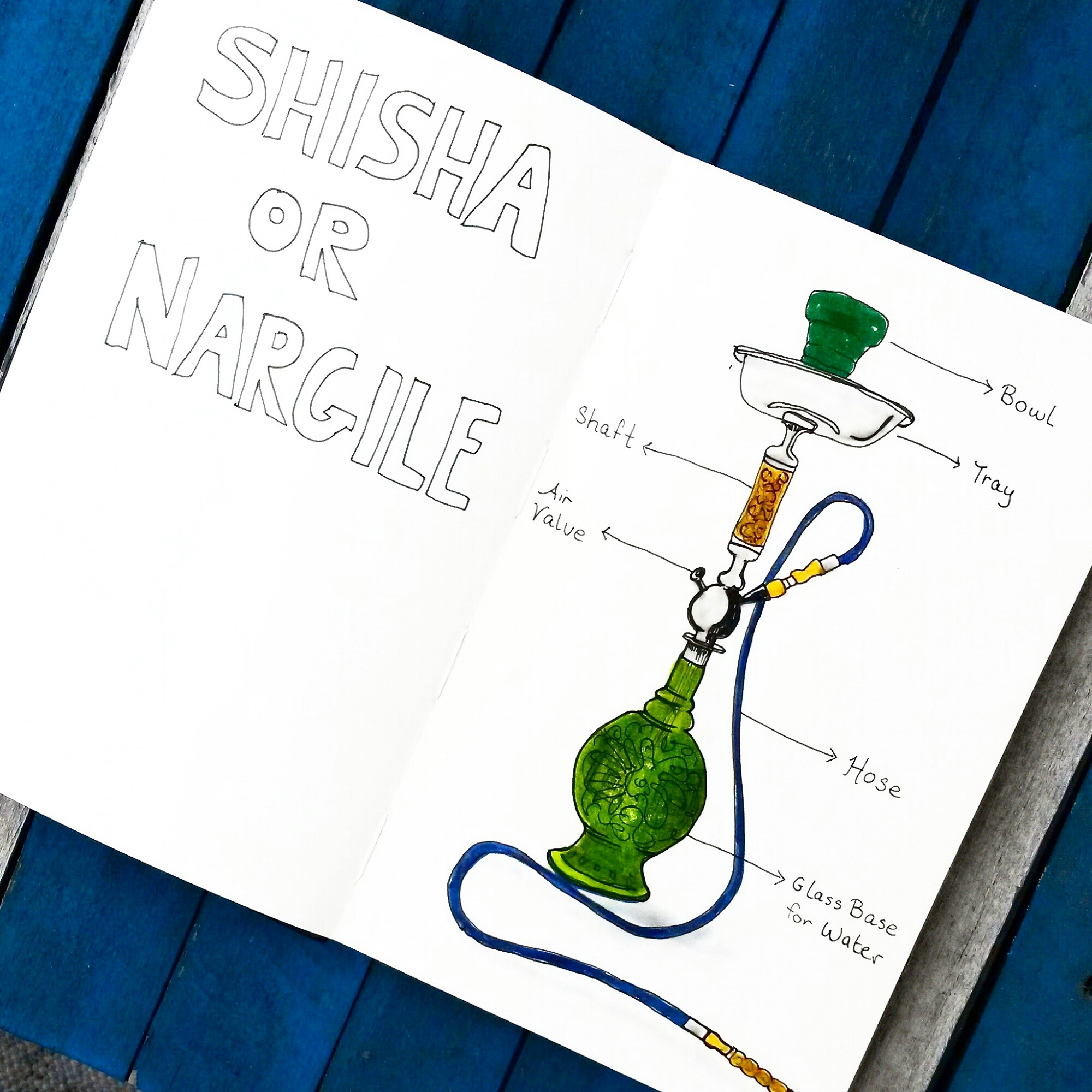 Sketch of the day in my moleskine art journal is a water pipe called Shisha or Nargile in Turkey. Smoking Nargile is Turkish past time.
