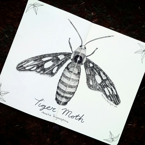 Today’s sketch of the in my moleskine art journal is a pen drawing of a tiger moth. Amata Trigonophora.