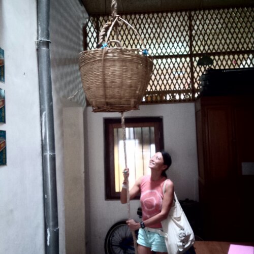 hanging grocery basket Sketch of the day no 669 in my moleskine art journal: the hanging basket. From Istanbul to Penang. I should have named it the flying basket. It would have been more appropriate! the grocery basket