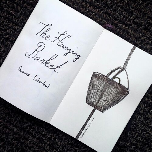 art, baskets, faber castell, history, istanbul, journal, moleskine, Penang, sketchbook, travel, vintage, woven basket