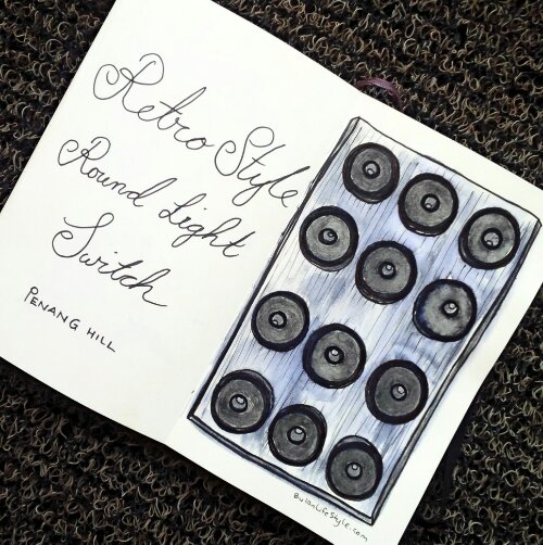 Sketch of the day in my moleskine art journal are some retro style round light switches that I spotted up on Penang hill at Belle Vue hotel. I love vintage finds and exploring Penang for all these treasures.