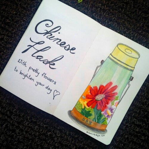 antiques, art, artist, chinese flask, daily art, faber castell, flowers, illustrator, moleskine, moleskine sketch, Penang, pretty things, prints, retro, sketchbook, vintage