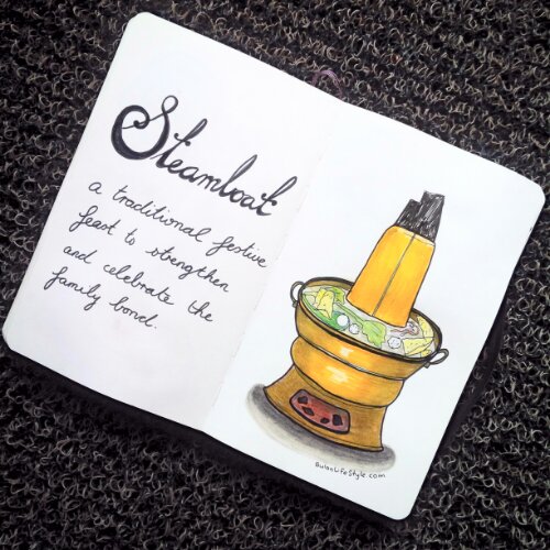 Today’s sketch of the day in my moleskine art journal is one of my favourite meals which is steamboat In Penang. It’s a festive feast that bring families together. It’s a chinese hot pot where you cook your own food.