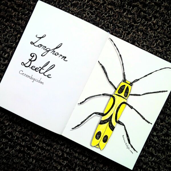 Today’s sketch of the day in my Daler Rowney art journal was an easy choice. It’s of a Yellow Longhorn Beetle that walked across my desk.