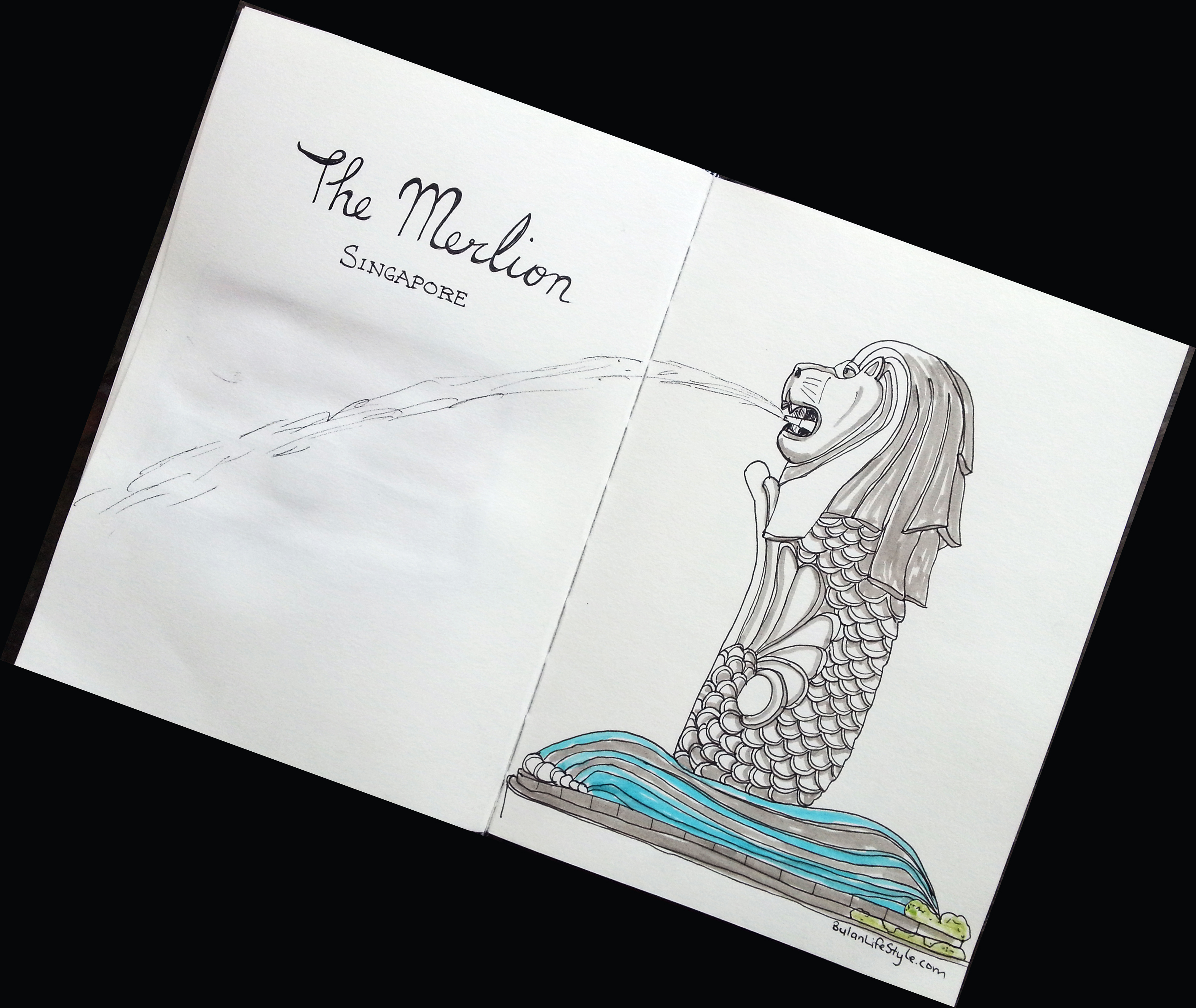 Today’s sketch of the day my art blog is of the The Merlion here in Singapore. It is an iconic statue which is half lion half fish.