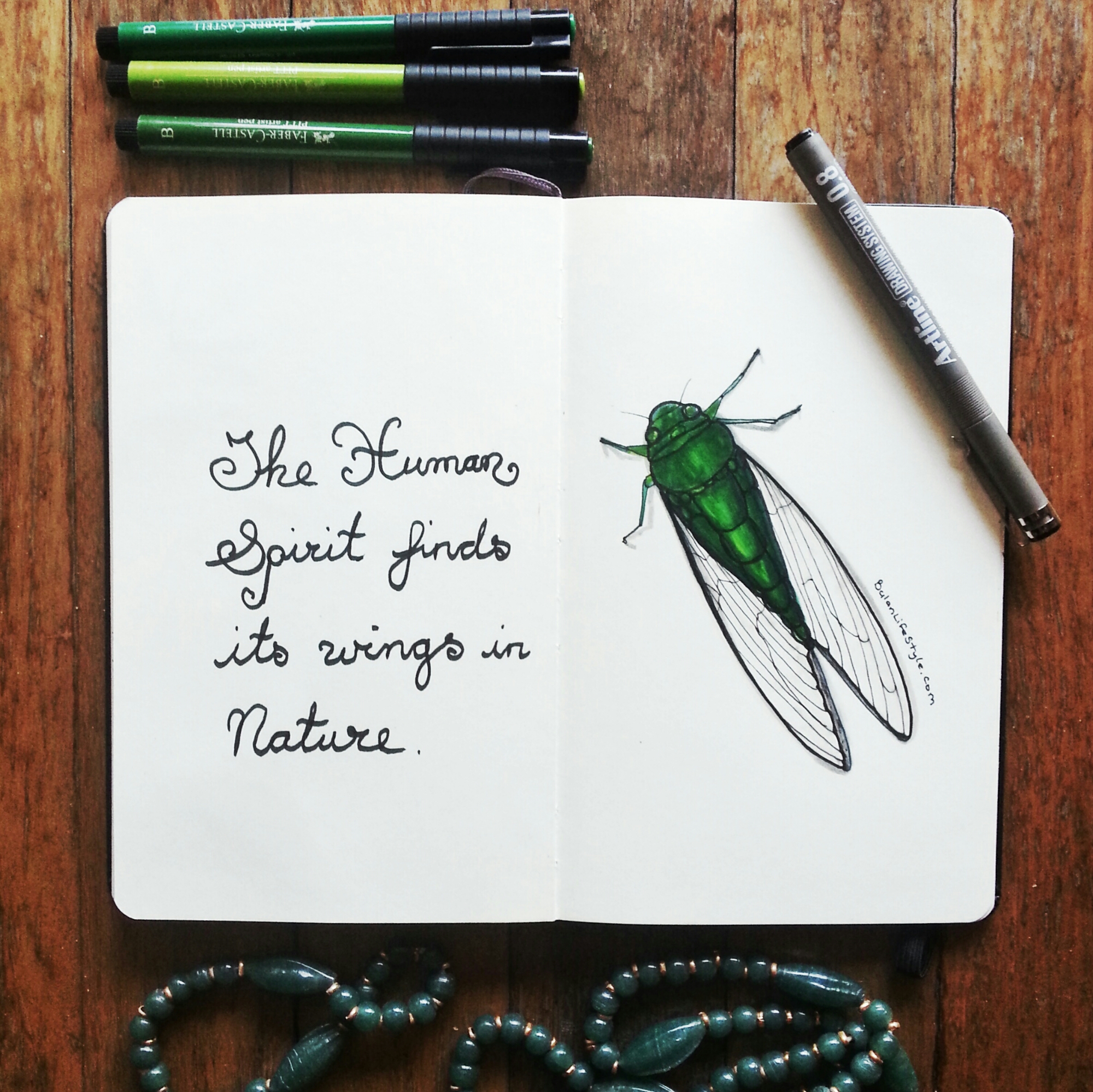 The human spirit finds its wings in nature. Sketch of the day in my moleskine art journal is a cricket.