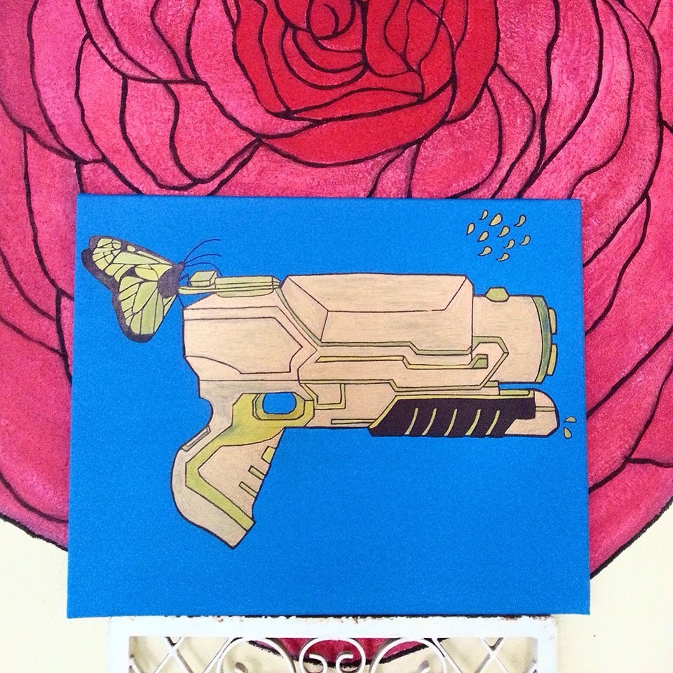 I’m working on some water pistol acrylic paintings to add to my growing collection. I don’t believe in owning guns but I do love water pistols.