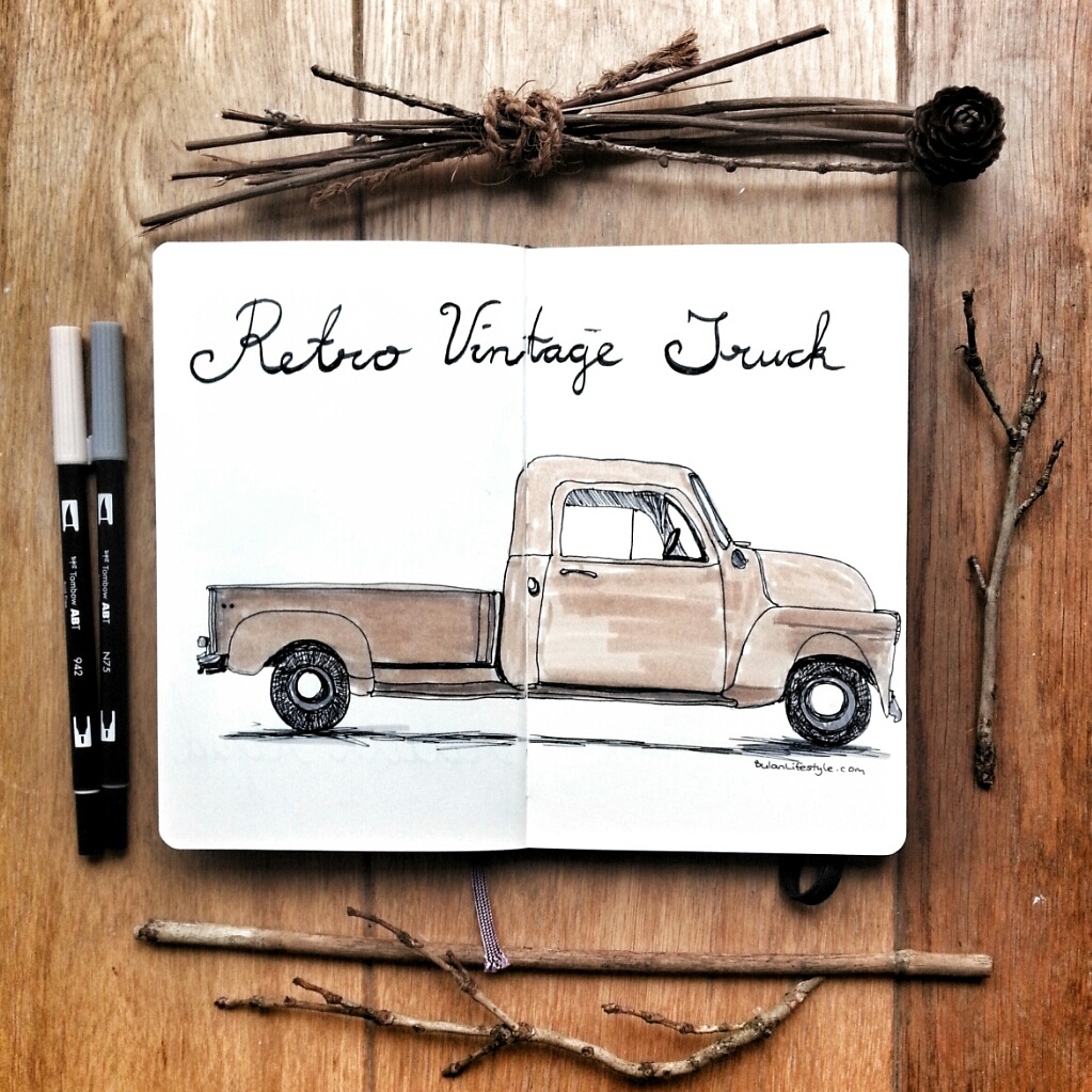 Happy Monday and have a great week! Sketch of the day in my moleskine art journal is a retro vintage truck I spotted on Columbia street in Hackney, east London.