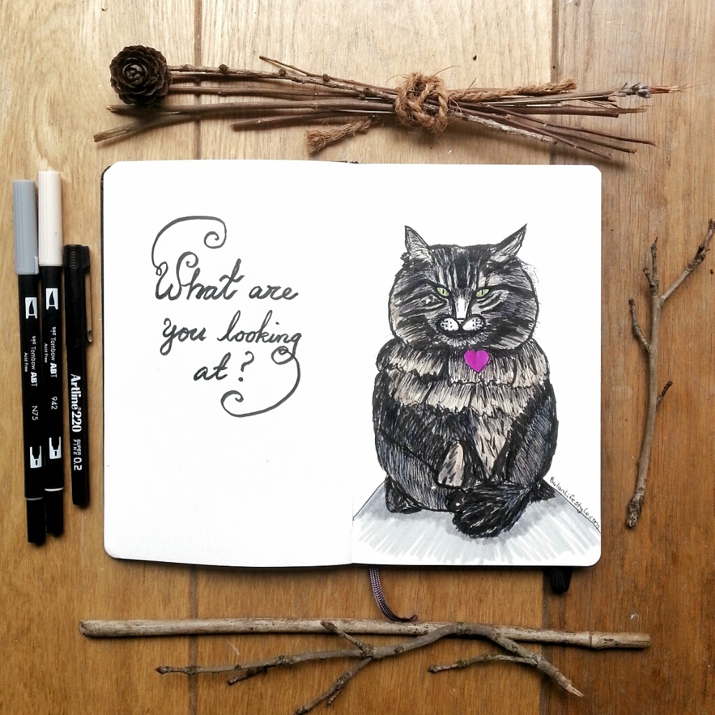 Sketch of the day in my moleskine art journal is of the gangster looking cat. Friend or foe I wonder?
