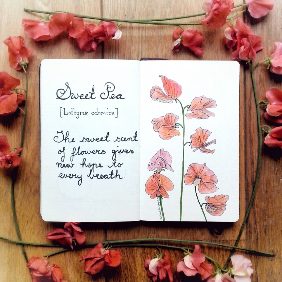 The sweet scent of flowers gives new hope to every breath. Sketch of the day in my moleskine art journal are sweet pea flowers. Have a beautiful day x