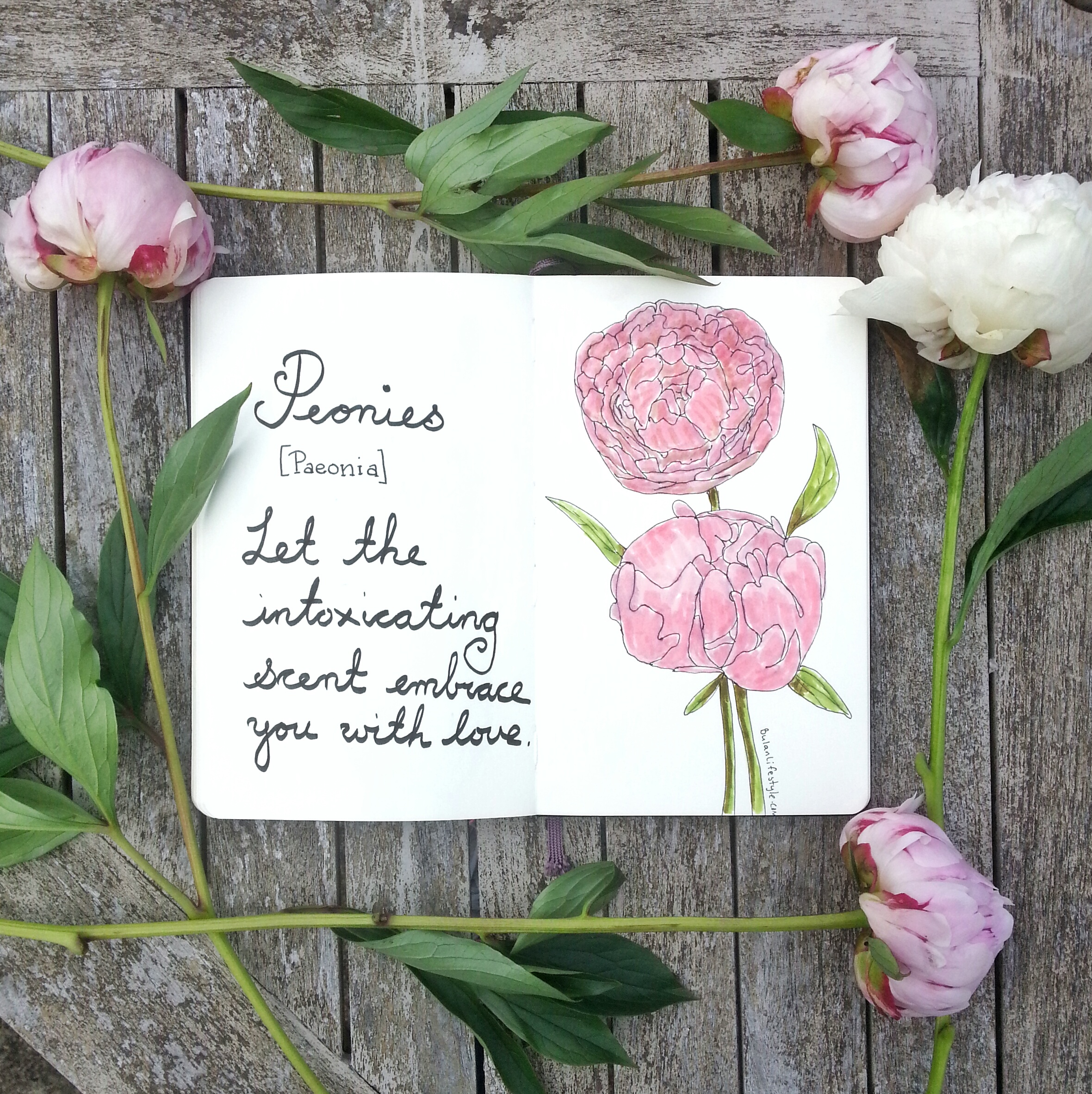 Sketch of the day in my moleskine art journal are pretty Peonies.
