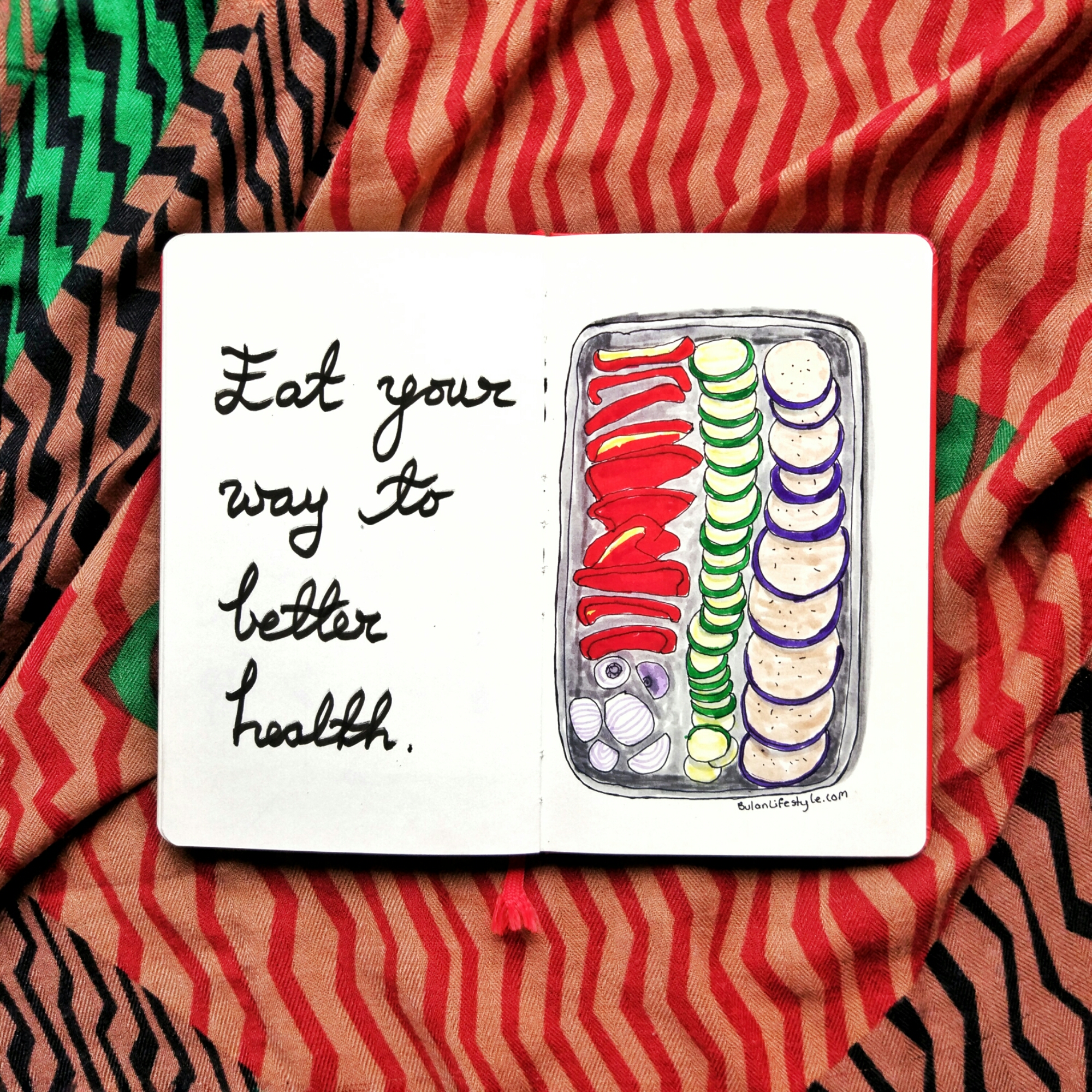 Eat your way to better health. Sketch of the day in my moleskine art journal is of some healthy grilled vegetables.