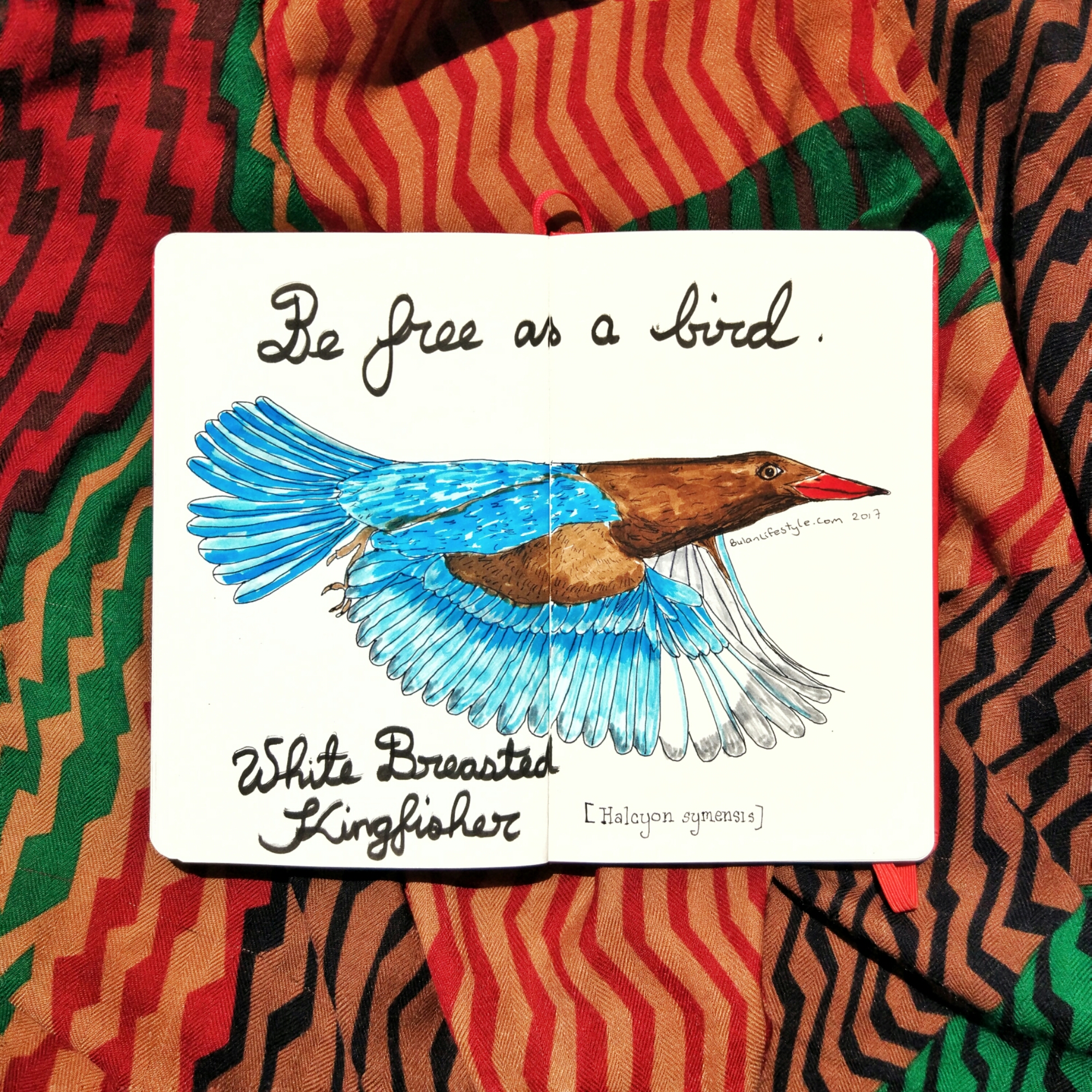White breasted kingfisher in Penang Be free as a bird. Sketch of the day in my moleskine art journal is of a white breasted kingfisher in the garden.