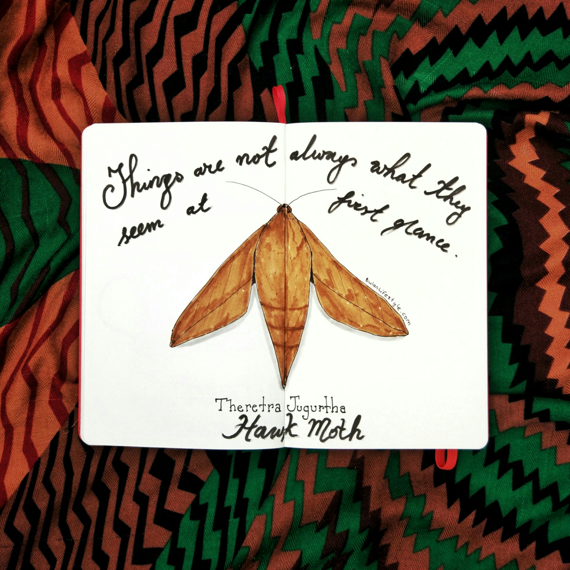 Things are not always what they seem at first glance. Sketch of the day no 1059 in my moleskine art journal: hawk moth