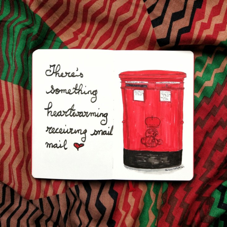 There’s something heartwarming receiving snail mail. Sketch of the day no 1063 in my moleskine art journal: Royal mail post box. ❤️