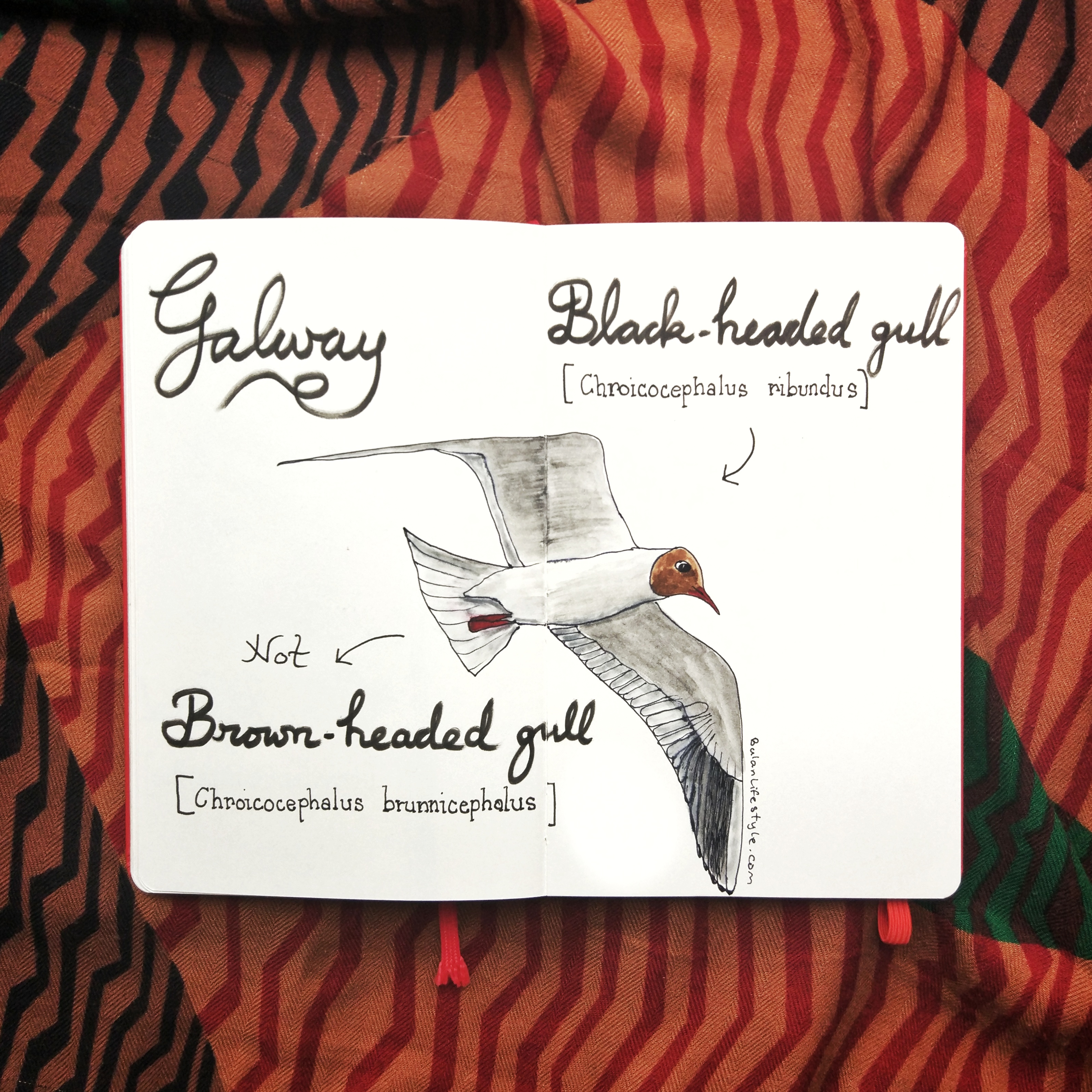 Sketch of the day in my moleskine art journal is of a Black headed gull in Galway, Ireland.